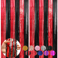 Q: What are the dimensions of the Metallic Foil Tinsel Backdrop?A: Each tinsel curtain backdrop measures 3.3 feet wide by 8.2 feet long, making them ideal for hanging on doors or fully covering walls.