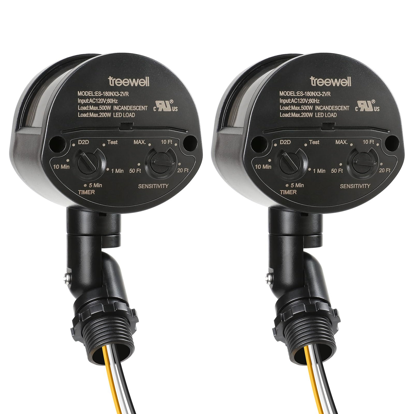 2 Pack Motion Sensor, 180-Degree Replacement Motion Detector, Adjustable Time & Detection Sensitiity Up To 60 Feet Range, 3 Working Modes Pir Motion Sensor For Security Floodlight, Black, Ul Listed