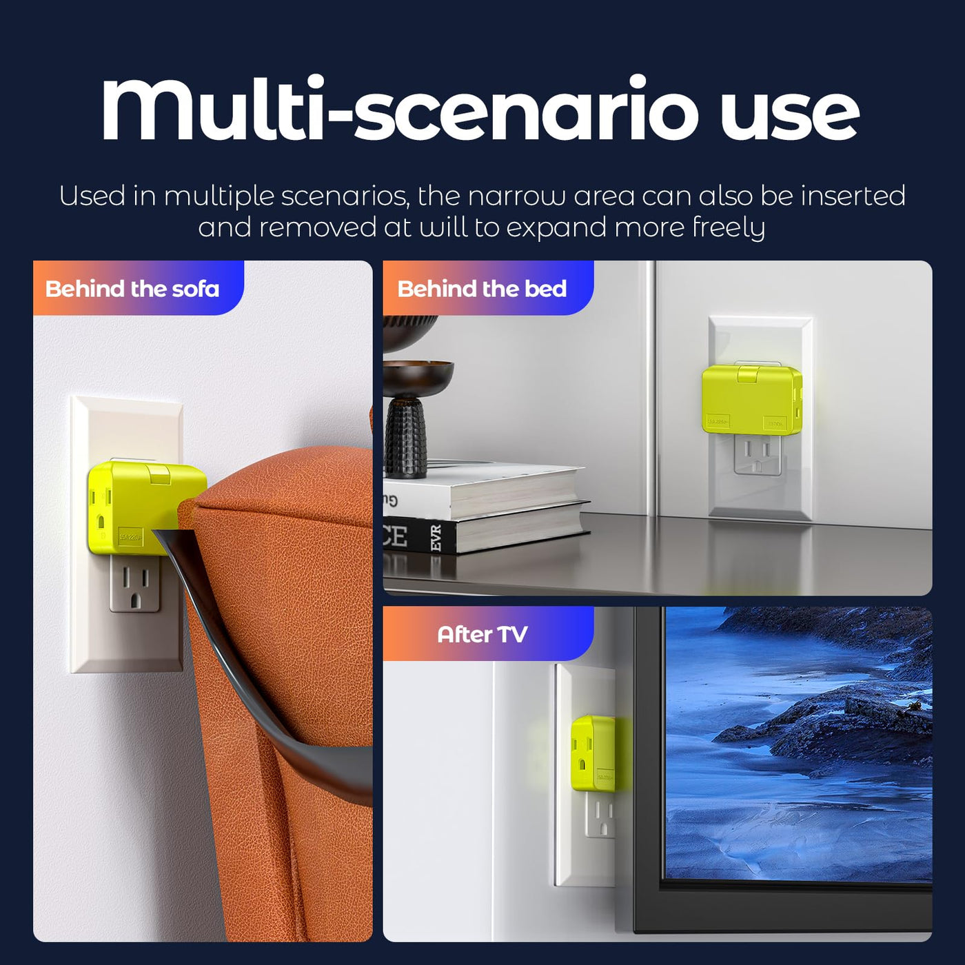 This Multi Plug Wall Outlet Is Easy To Use, Apply For Any Indoor Place With Socket, Especially For The Living Room, Bedroom, Bathroom, Kitchen, Hotel, Office And College Dorm Room.