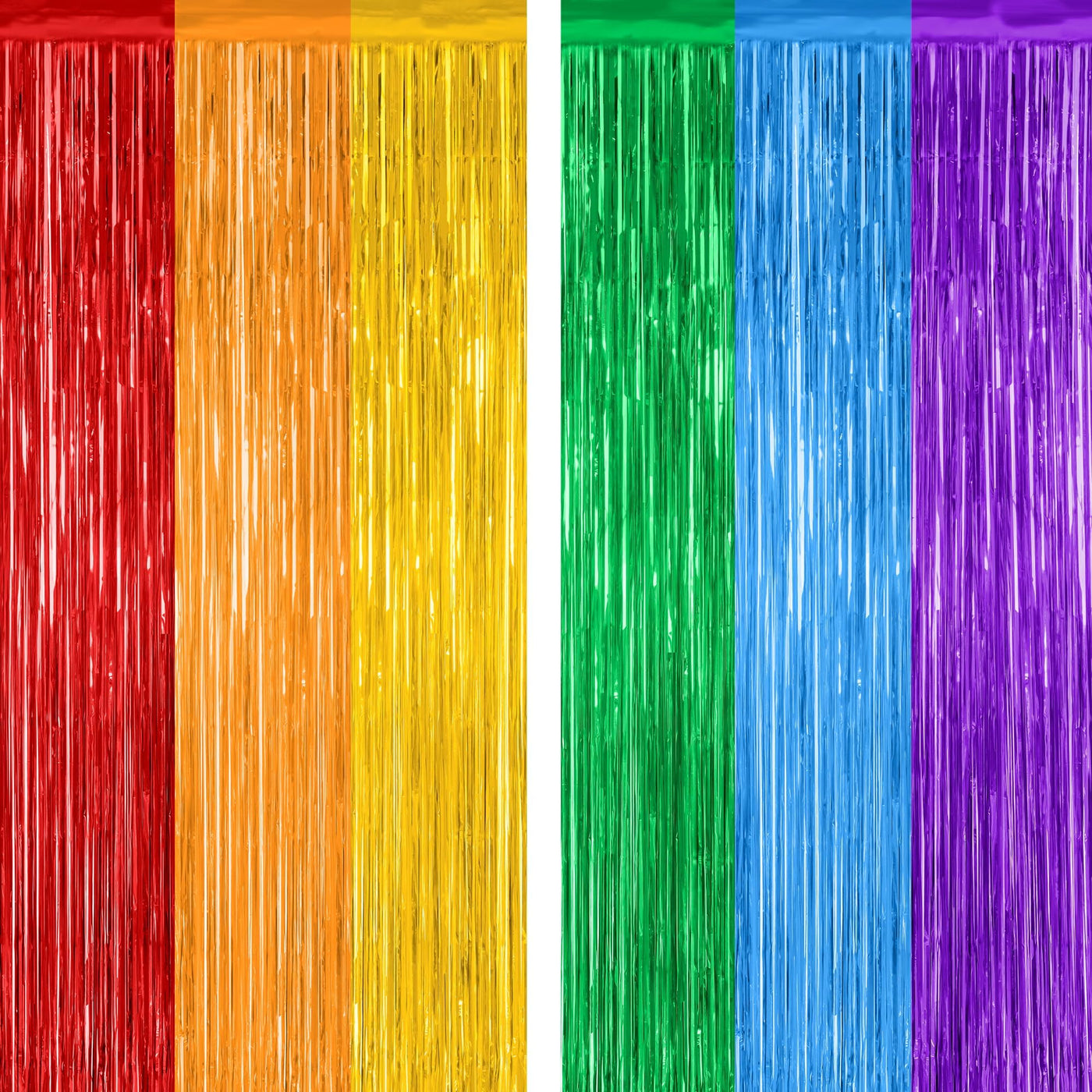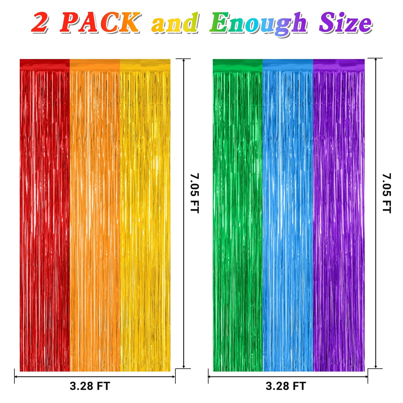 These Rainbow Foil Curtains Are A Great Addition To The Party! Package Includes: Red Orange Yellow Fringe Curtains X 1 Pack Blue Green Purple Fringe Curtains X 1 Pack Size: 3.28 Ft X 7.05 Ft Colors: Rainbow (Red, Orange, Yellow, Blue, Green, Purple) Design: Metallic Glossy Design Features: Large Size: Can Be Cut To Length As Needed Non-Tearable: 23 M Pet Material, Lightweight And Non-Tearable Easy To Install: Comes With Adhesive Tape, No Assembly Required Use Occasions: Lgbt Party, Birthday, Celebrations Warm Tips: These Rainbow Tinsel Backdrop Come With Adhesive Paper, But Please Do Not Stick Them On Rough And Uneven Surfaces.