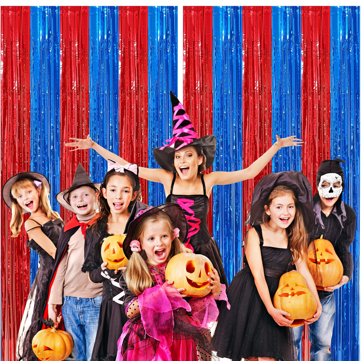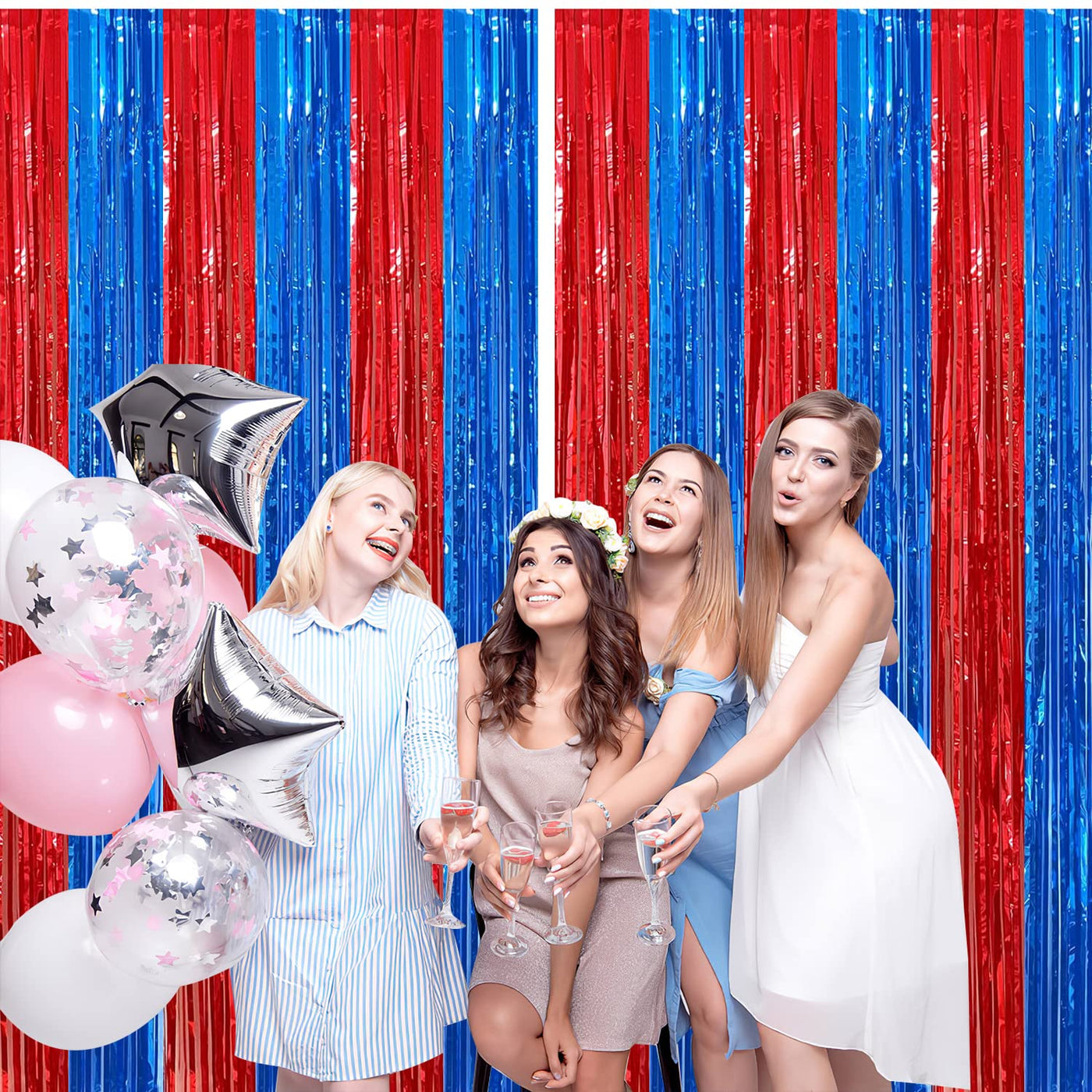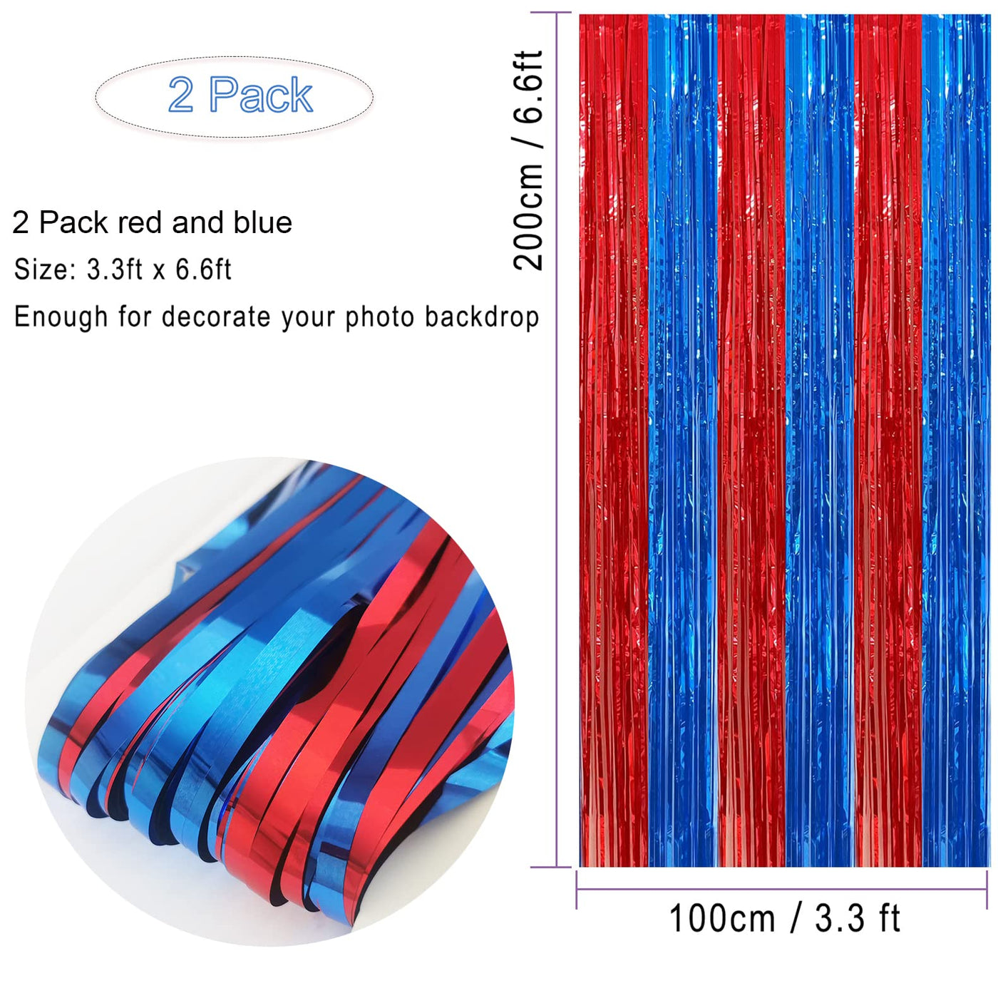 2 Pack Red And Blue Foil Fringe Curtains Photo Booth Prop Tinsel Streamer Backdrops Birthday Party Supplies Bachelorette Bridal