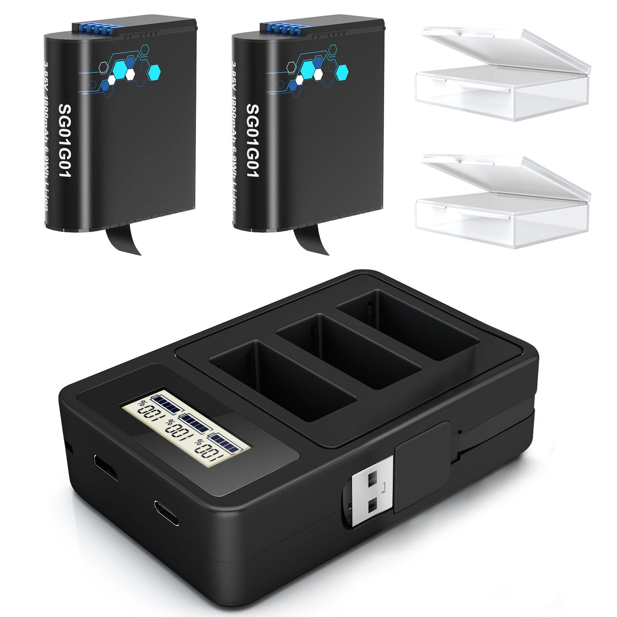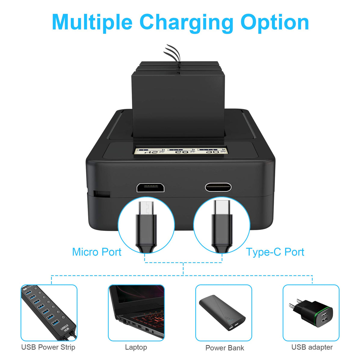 Flip Box With 2 Pack Batteries And Charger For Gopro, Fully Compatible With The Models: Gopro Of Hero 8 Black/ Hero 7 Black/ Hero 6 Black/ Hero 5 Black. Battery Details: Large Battery Capacity,&Nbsp; Efficient And Durable. Battery Capacity : 1800Mah Battery Voltage : 3.85V/700Ma Battery Type : Lithium Battery Charger Input : 5V/2.1A Max Digital Monitor High Speed Micro Sd Card Reader Function Charger: You Can Check The Battery Level On The Digital Display At Any Time When You Need It. Black Reader Box Has A Micro Sd Card Reader When You Hook Up The Device To You Computer With A Foldable Usb Cord From Charger. Protected Against Overcharging, Short Circuit, And Electronic Shock, Over Discharge, Over-Temperature, Over Current, Over Voltage; The Gopro Of Hero 8 Charger Is Easy To Carry And Doesnt Occupy The Backpack Space.