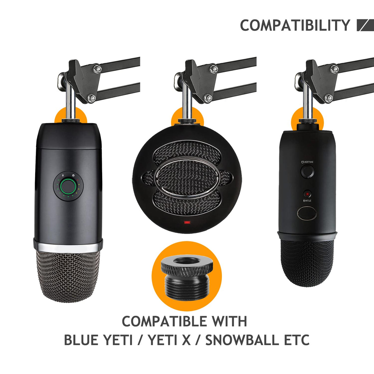 Why Get This Product: If You Have Some Sort Of Mic Stand Or Boom Arm That Has A Small Screw But Your Microphone Has A Big Screw, This Is The Adapter For You. Product Dimensions : H 12.5 X D 18 Mm; 32 Grams. A Thread Adapter To Attach A Microphone To A Microphone Stand. It Features 5/8 Male To 3/8 Female For Use With Mic Stands With European 3/8 Threads. Knurled Outer Flange For Ease Of Tightening. Great Little Piece Of Equipment To Own For Any Photographer Or Videographer, Great Adapter To Attach Blue Snowball Mic Blue Yeti Microphone To The Microphone Suspension Boom Scissor Arm Stand. Note: Most Mics Have A 5/8 Thread. The Diameter Of A 5/8 Threaded Hole Is About 15Mm. You Can Check It Before Purchase. Note: It Doesn'T Work With Blue Yeti Nano Since The Bottom Screw Hole Of Yeti Nano Is 1/4-20 Threads. Package Includes: 2 X 5/8'' Male To 3/8'' Female Screw Nut