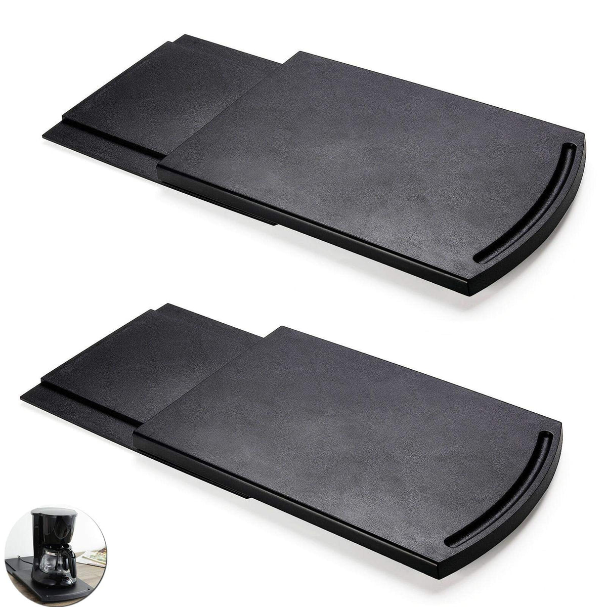 2 Pack Sliding Coffee Maker Tray, 12 Countertop Appliance Caddy Slider For Blender Toaster Under Carbinet, Black Abs Rolling Out