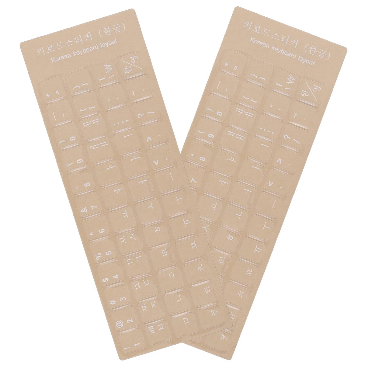 2 Pack Universal Korean Keyboard Stickers Transparent Background, Transparent Background With White Lettering For Computer Lapto