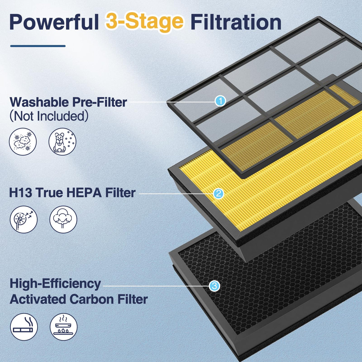 2 Pack Vital 200S Pet Replacement Filter For Levoit Vital 200S And Vital 200S-P Air Purifier, H13 True Hepa And High-Efficiency Activated Carbon Filter, Vital 200S-Rf-Pa (Lrf-V201-Yus), Yellow