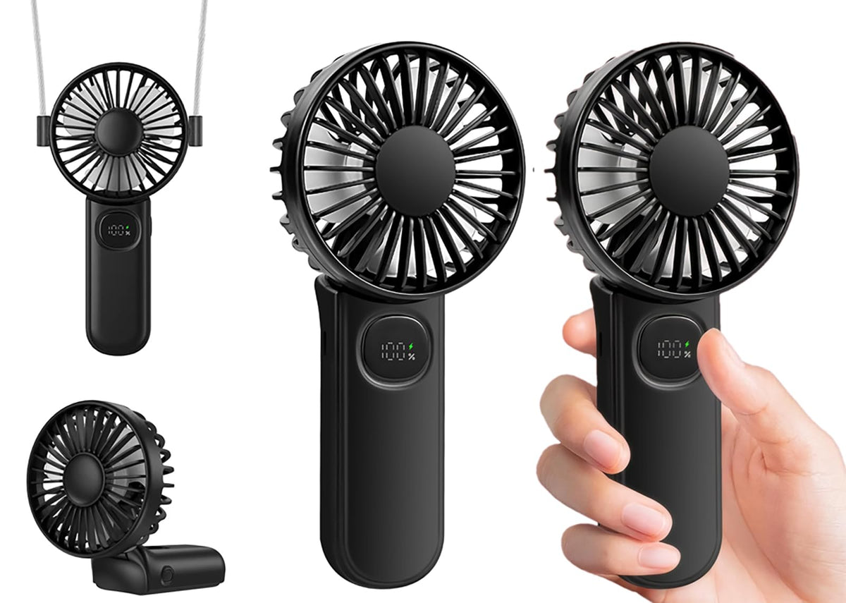 [2 Packs Portable Handheld Fan] Personal Hand Held Fan For Travel, Foldable Eyelash Neck Fan With Digital Display, Lanyard, 5 Sp