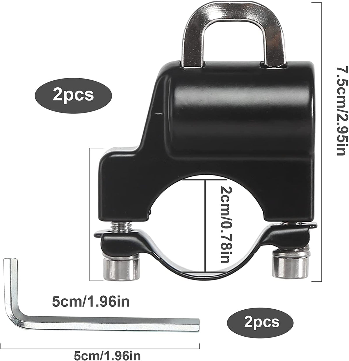 Other 22 Mm-28 Mm Tube For Motorbikes, Off-Road Vehicles, Electric Motorbikes Product Information: Material: Aluminium Alloy Colour: Black Dimensions: 47X57 Mm Fitting Diameter: 20-27 Mm Products Include: 2 * Motorcycle Helmet Padlock 4 * Keys 4 * Washers 4 * Screws 2 * Hexagons