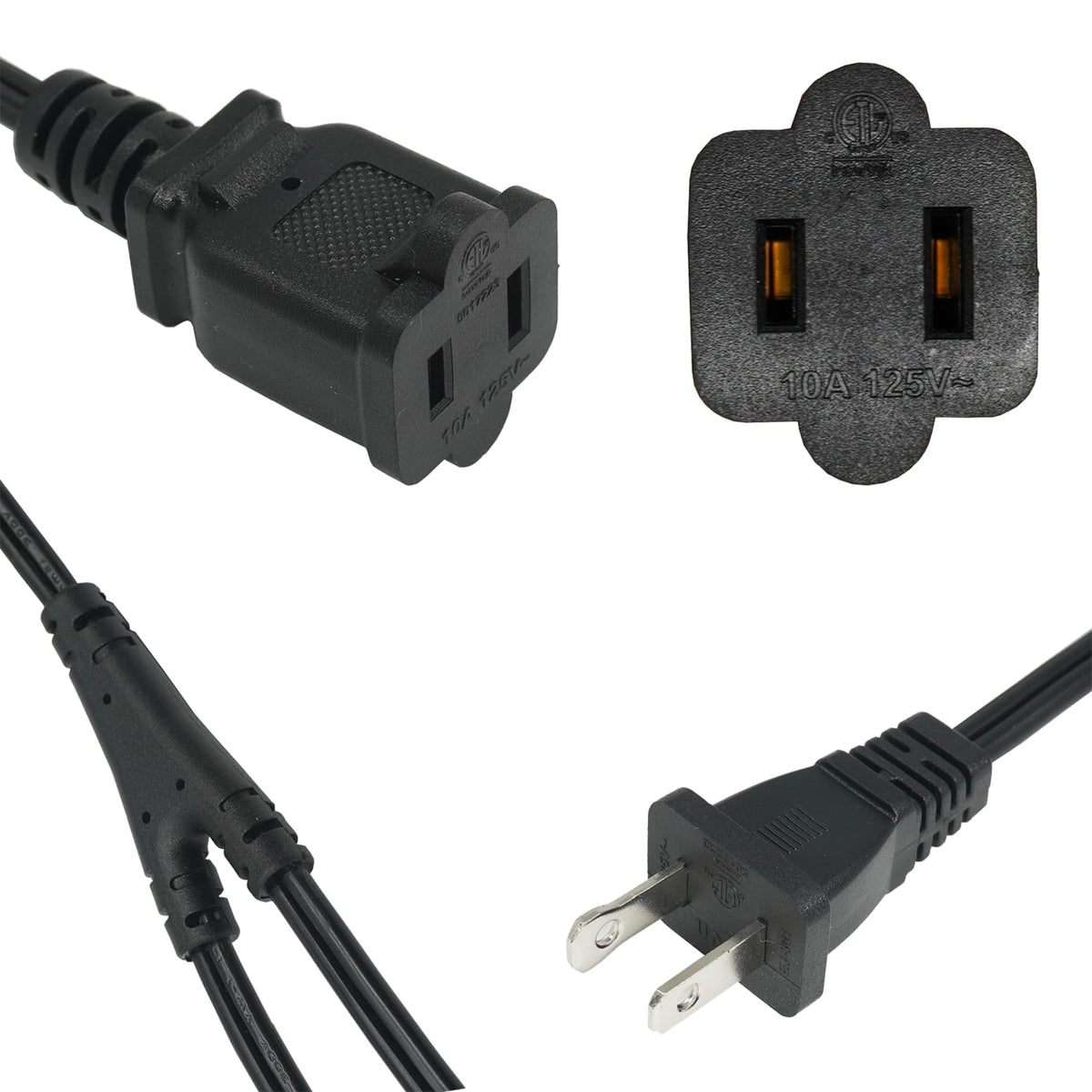 2 Prong 1 To 2 Extension Cord, 2 Way Indoor Power Cable Outlet Saver Splitter, Male To Female Y Splitter, Sjt 18 Gauge Wire, 10
