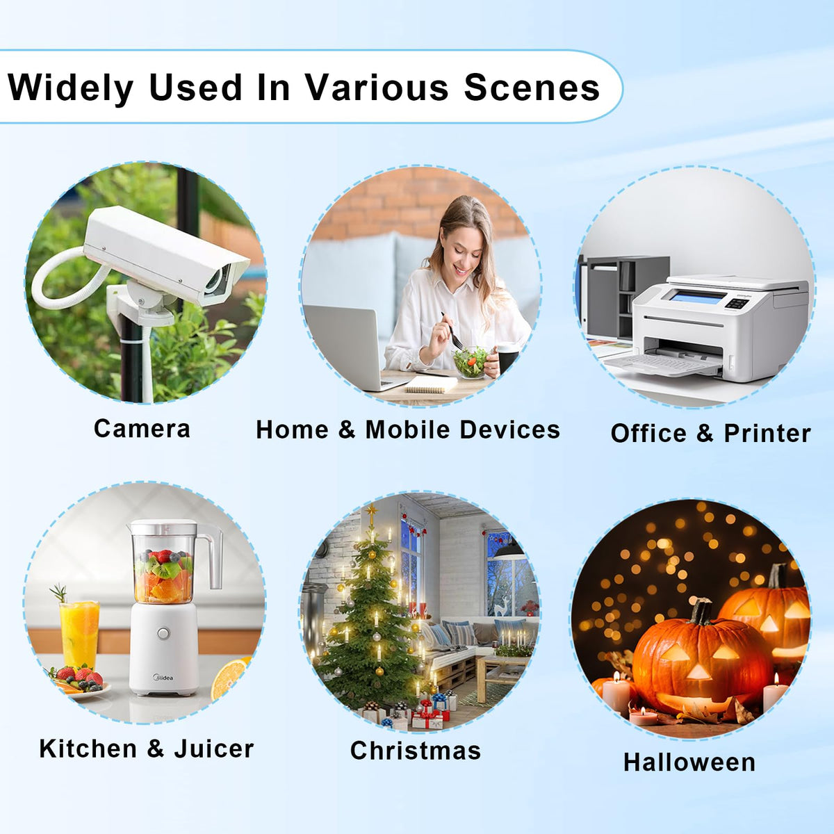 Q: What type of devices can I use with this extension cord?A: This extension cord is compatible with devices that have a NEMA 5-15P plug, such as Christmas lights, small appliances, and other electronic devices that do not exceed 10A and 125V.