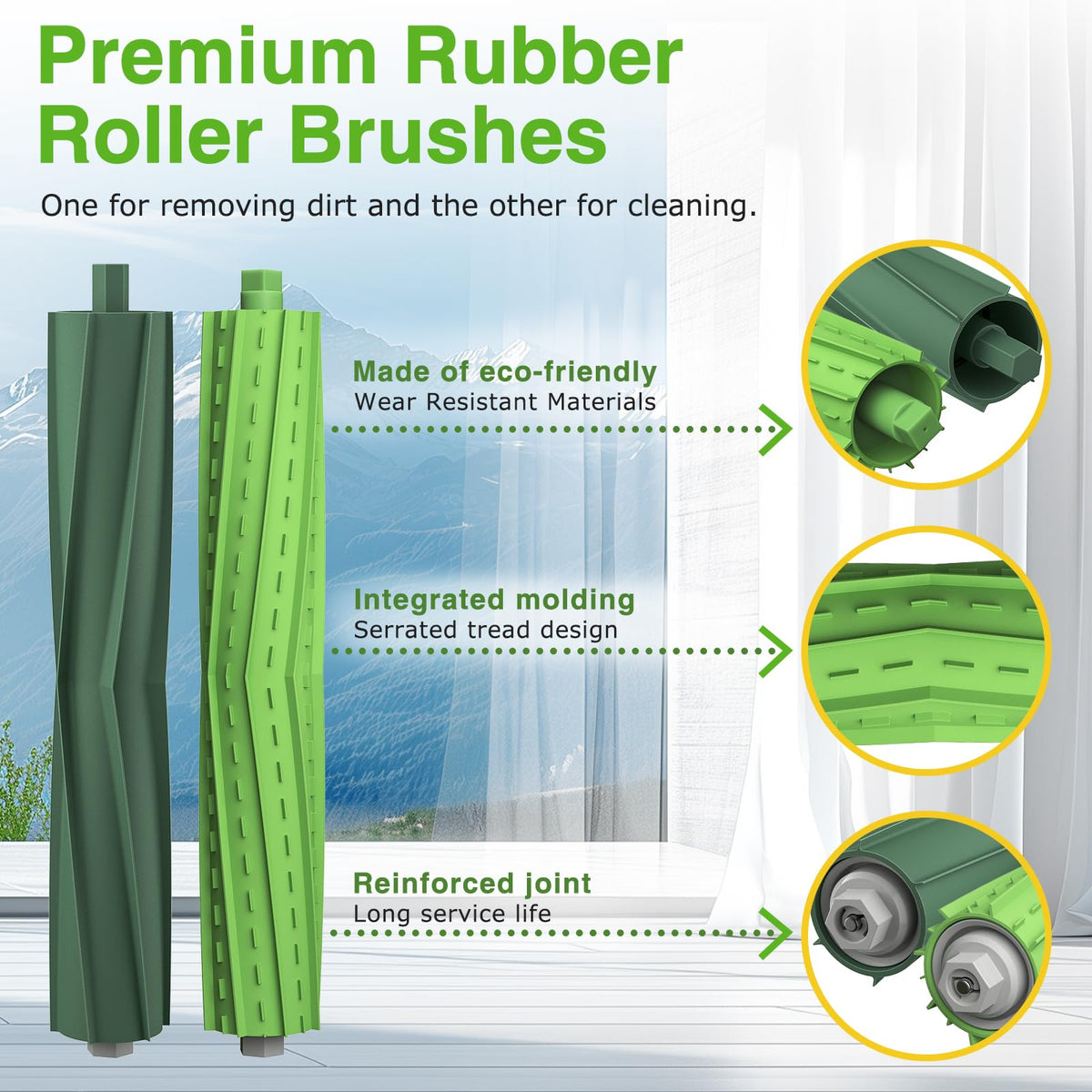 Q: How often should I replace the rubber roller brushes for optimal performance?A: For the best cleaning results, it is recommended to replace the rubber brushes every 3 months to keep your Roomba vacuum operating effectively.
