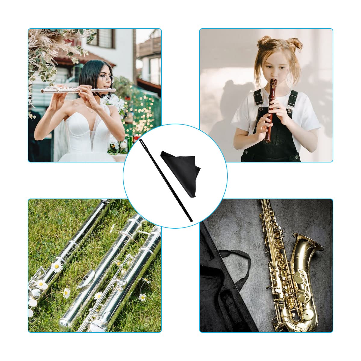Material: Plastic And Fabric Color: Black Package Content: 2 Pcs Flute Cleaning Cloth 2 Pcs Flute Cleaning Rod Product Size: Cloth: 15X14.7 Cm / 5.9X5.8 In Rod: 34.5 Cm / 13.6 In Easy To Use And Clean: The Flute Cleaning Cloth On The Flute Stick Hole, And Then Insert It Into The Flute And You Can Use This Rod To Rotate And Clean The Flute. After Using, This Flute Maintenance Kit Is Easy To Clean, Just Using Cleanse To Wash Them And Dry By Airing. Flute Cleaning Rod Suitable For Most Flutes And Piccolo, Used To Clean The Interior And Adjust The Position Of The Flute Reflector.