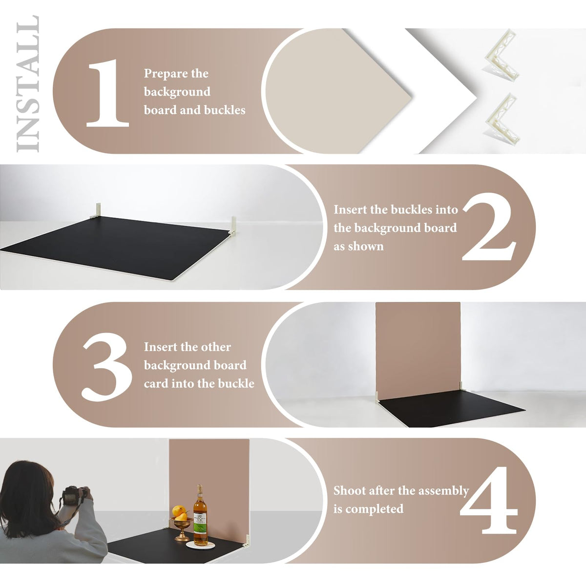 ??Package: 2 Double-Sided Photo Boards, 4 Buckles; | ??Different From The Old Photo Backdrop Board, This Photo Backdrop Board Is Double-Sided With Patterns On Both Sides. | ??24'' X 24''; Thk: 0.2''; | ??One-Of-A-Kind Photo Backdrop Board Design For Desktop Photography, Such As Food, Commercial Ads, Cosmetics, Flowers, Jewelry, Clothing, Etc. Compelling Pictures Can Be Taken Without Any Bulky Tools; | ??We Are A Professional Team That Can Provide A Satisfactory Service And Long Assurance.