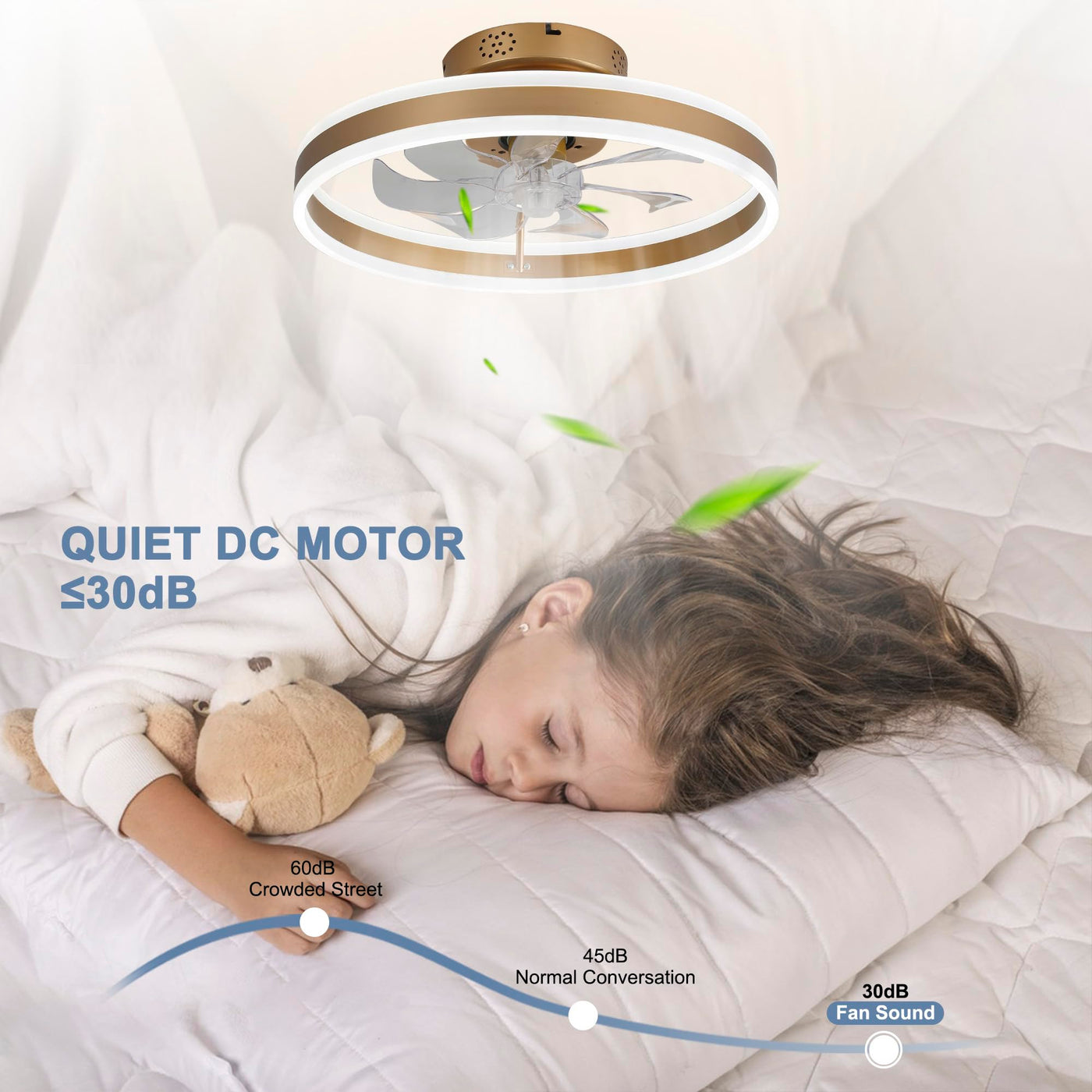 20 Inch Low Profile Ceiling Fan With Light ,Modern Round Led Low Profile Fan With Remote Control And App,Reversible Blades,3 Col