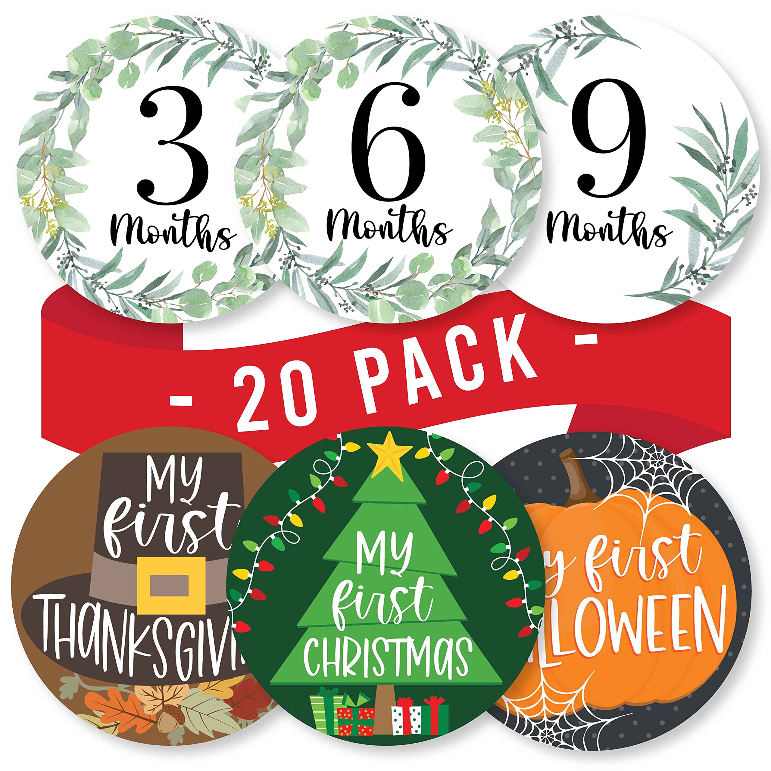 Celebrate The Moments That Matter Youll Receive 20 Quality Matte 4-Inch Circular Stickers Including Just Born, 1-12 Months Old, I Can Crawl, I Can Roll Over, My 1St 4Th Of July, My 1St Thanksgiving, My 1St Halloween, My 1St Christmas, And My 1St Easter Take Beautiful Pictures As Your Baby Grows With These Adorable Green And Gold Baby Months Stickers Perfect First Birthday Decorations And Baby Photo Props Boy Or Girl, These Monthly Stickers Gender Neutral Make It Easy To Capture Precious Moments In Your Babys First Year If Youre Looking For A Baby Boy Baby Shower Gift Or Baby Shower Gift For Girl, These Adorable Milestone Stickers For Baby Boy Monthly Milestone Are For Youcapture Baby Milestones In Style With This Baby Monthly Milestone Boy Monthly Growth Sticker Set Perfect Baby Boy Photoshoot Props And Baby Girl Photoshoot Props, Baby Milestone Picture Display First Year Monthly Stickers Are A Great Way To Celebrategreat For Photography Or Scrapbooking, The Month Stickers For Baby Boy Are Perfect Markers Photo Props For Babies Looking For Baby Month Stickers Girl Baby Shower Gift Ideas Monthly Stickers For Baby Girl Stickers Are Fun Baby Photo Props For Girls For Monthly Baby Pictures The Newborn Boy Photo Props Are Great Baby Picture Props, Baby Boy Stickers, Monthly Baby Stickers Boy Milestone Stickerskeep Track Of Your Babys Growth Baby Girl Monthly Stickers Make It Easy To Keep Track Of Each Baby Girl Monthly Milestone These Eucalyptus Leaves Monthly Stickers For Baby Boy Month Stickers Are The Perfect Infant Milestone Baby Belly Stickers For Youperfect Baby Shower Gifts, These Stickers Are Cute Baby Boy Monthly Stickers Or Baby Girl Milestone Stickers Baby Girl Month Stickers Are Milestone Props One Month Stickers For Babys Month Stickers For Baby Pictures Are A Fun Baby Shower Gift For Boy