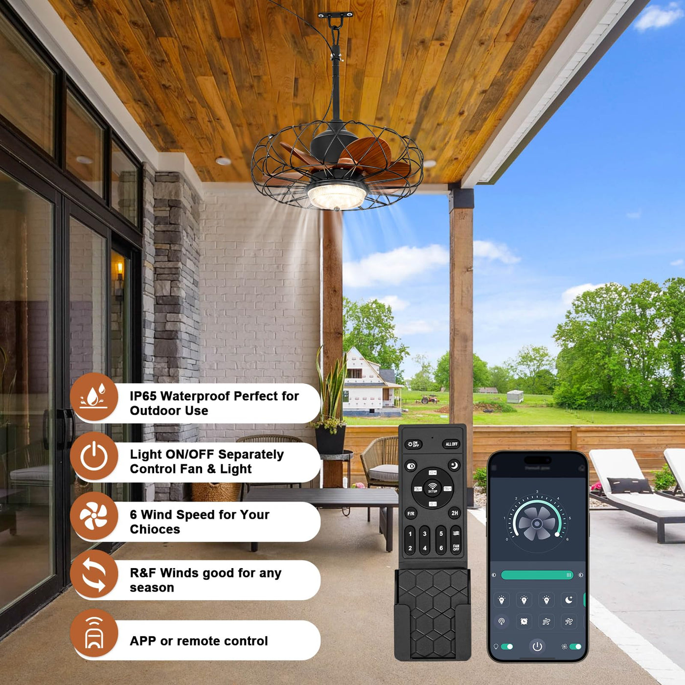 20 Outdoor Ceiling Fan With Light For Patios Waterproof Caged Gazebo Fans Outdoor Hanging Lighting With Plug-In Cord, Dimmable Led, Remote App Control, 6 Speeds For Pergola Porch Gazebo