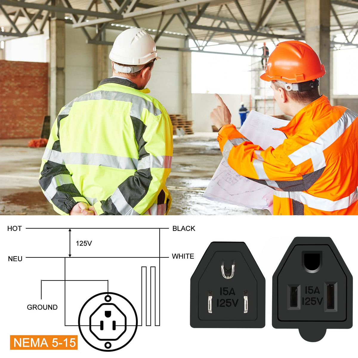 Q: What is the maximum current and voltage rating for these extension cord plug replacements?A: The extension cord plug replacements are rated for a maximum current of 15A and a voltage of 125V, making them suitable for a variety of household appliances and tools.