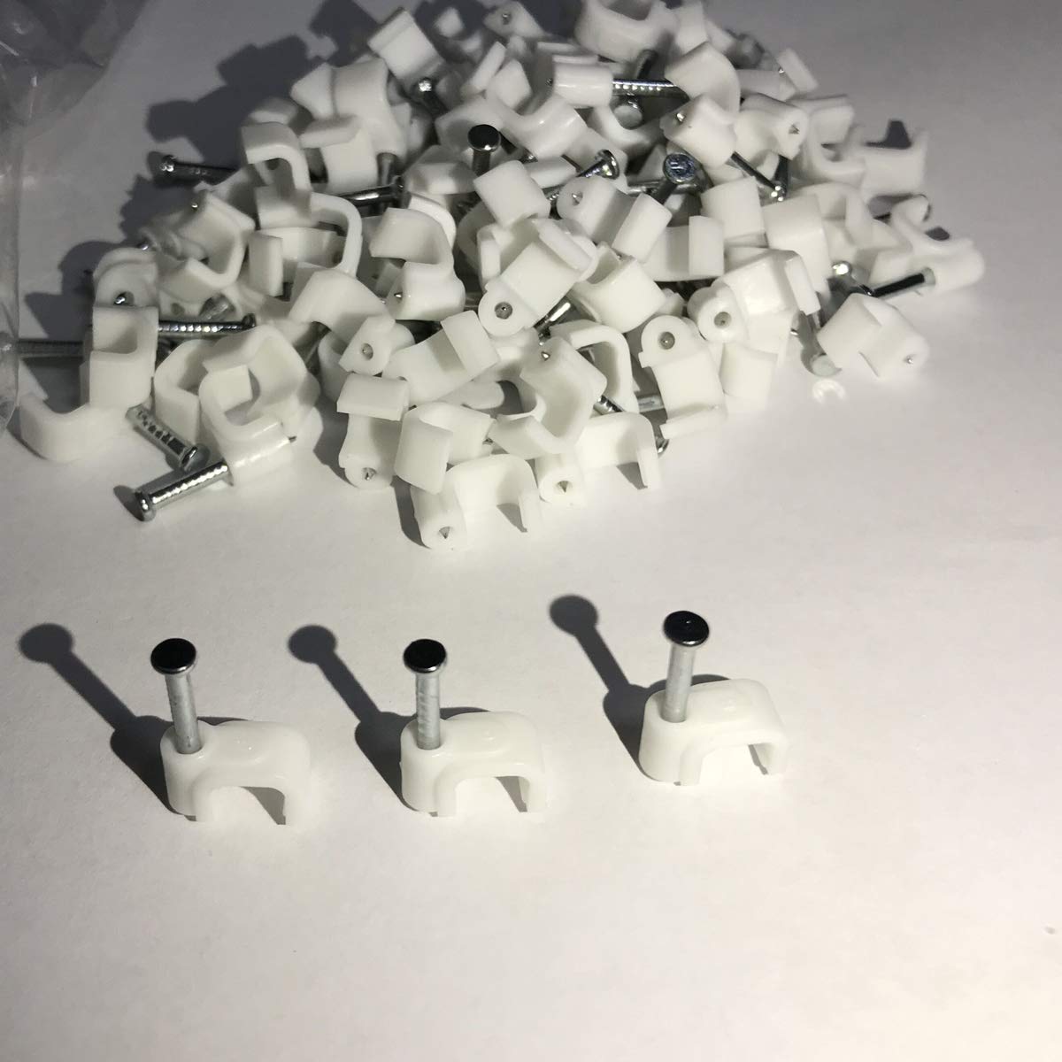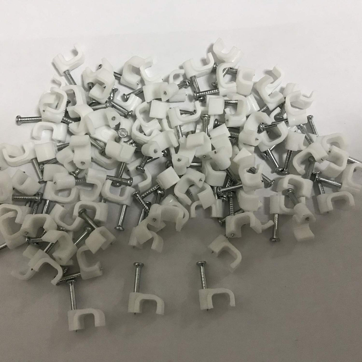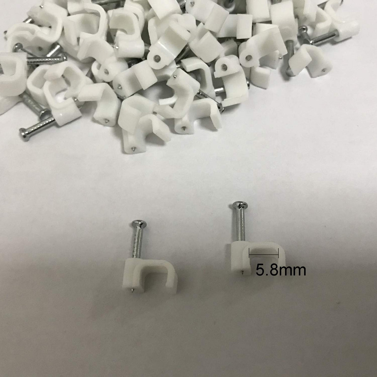 200 Pcs 6Mm Flat Ethernet Cable Wire Clips Single Coaxial Cable Clamps With Nail For Ethernet Cable Management