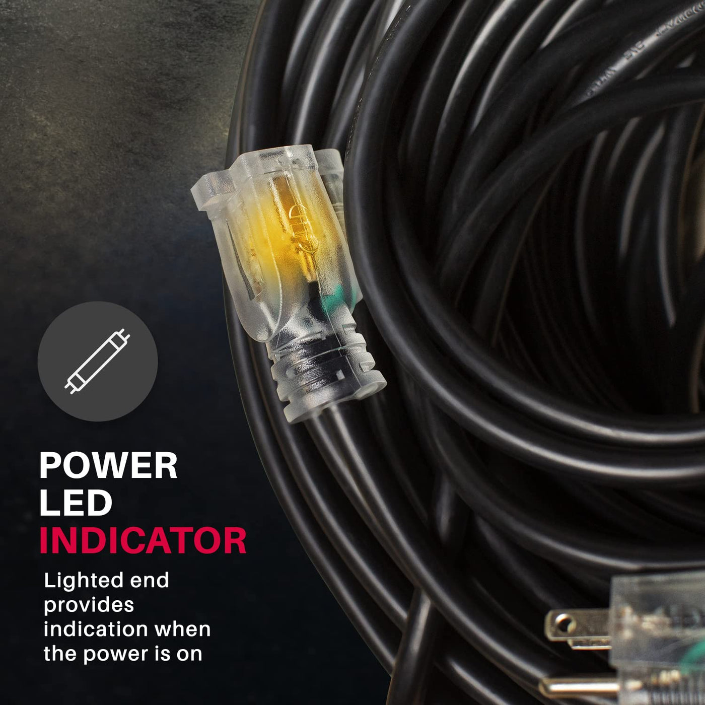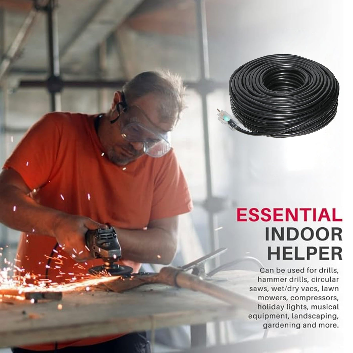 200Ft Power Outdoor Extension Cord & Indoor Waterproof Electric Drop Cord Cable 3 Prong Sjtw, 14 Gauge, 7 Amp, 125 Volts, 87