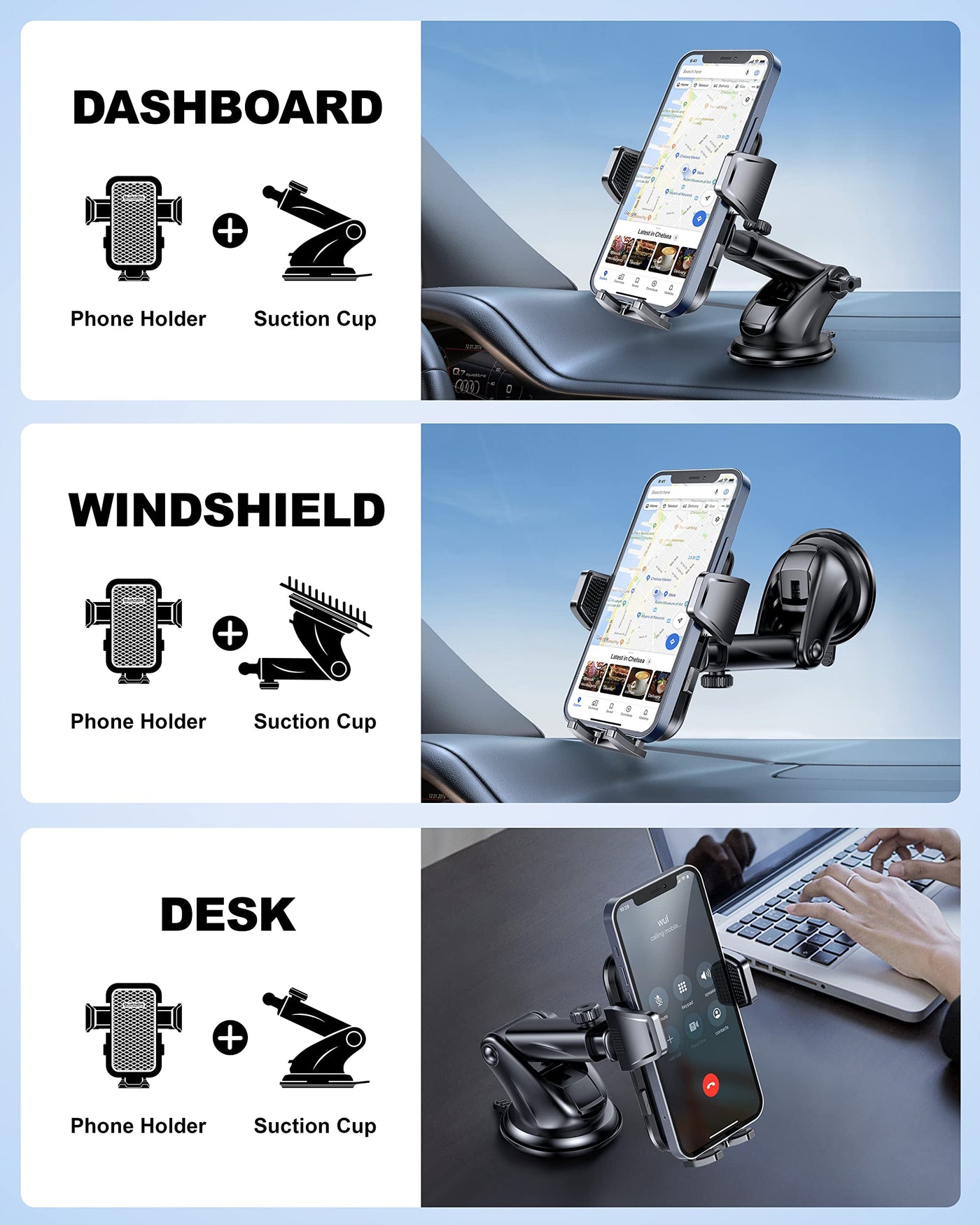 ?2023 Strongest? Military Grade Phone Stand, Hands Free Cell Phone Holder Car For Dashboard Windshield Desk, Truck Phone Mount H