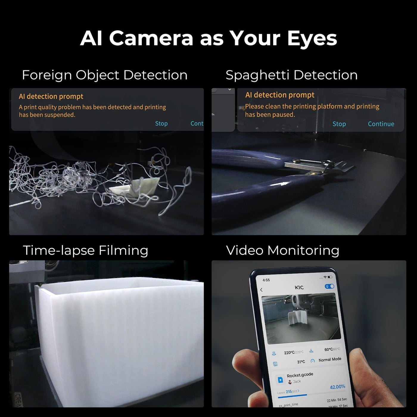 [2024 New] Creality K1C 3D Printer Up To 600Mm/S Fast Speed, Reliable Carbon Fiber Printing, Anti-Vibration Design, Auto Calibra