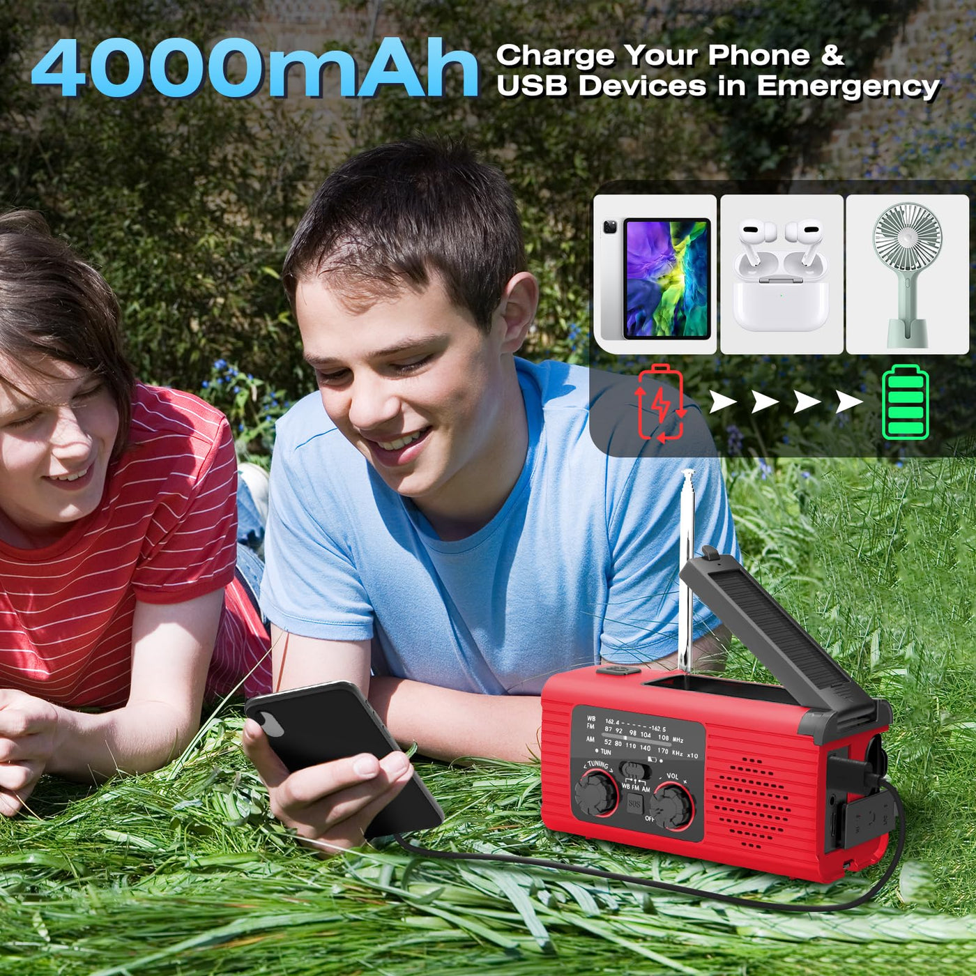 [2024 Newest] Noaa Emergency Weather Radio, 4000Mah Weather Alert Radio Solar Charging, Hand Crank & Usb Charged, Am/Fm Radio Wi