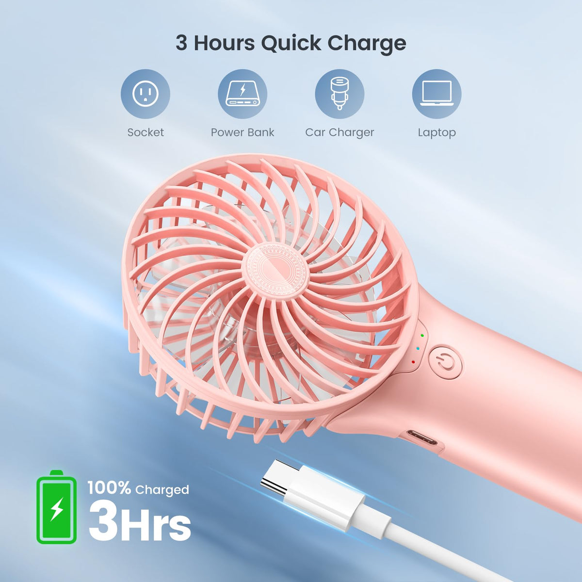2024 Upgrade Handheld Portable Fan Longer Lasting Max 20Hrs Working Time, 4 Speeds Strong Wind Usb Rechargeable Personal Mini Fa