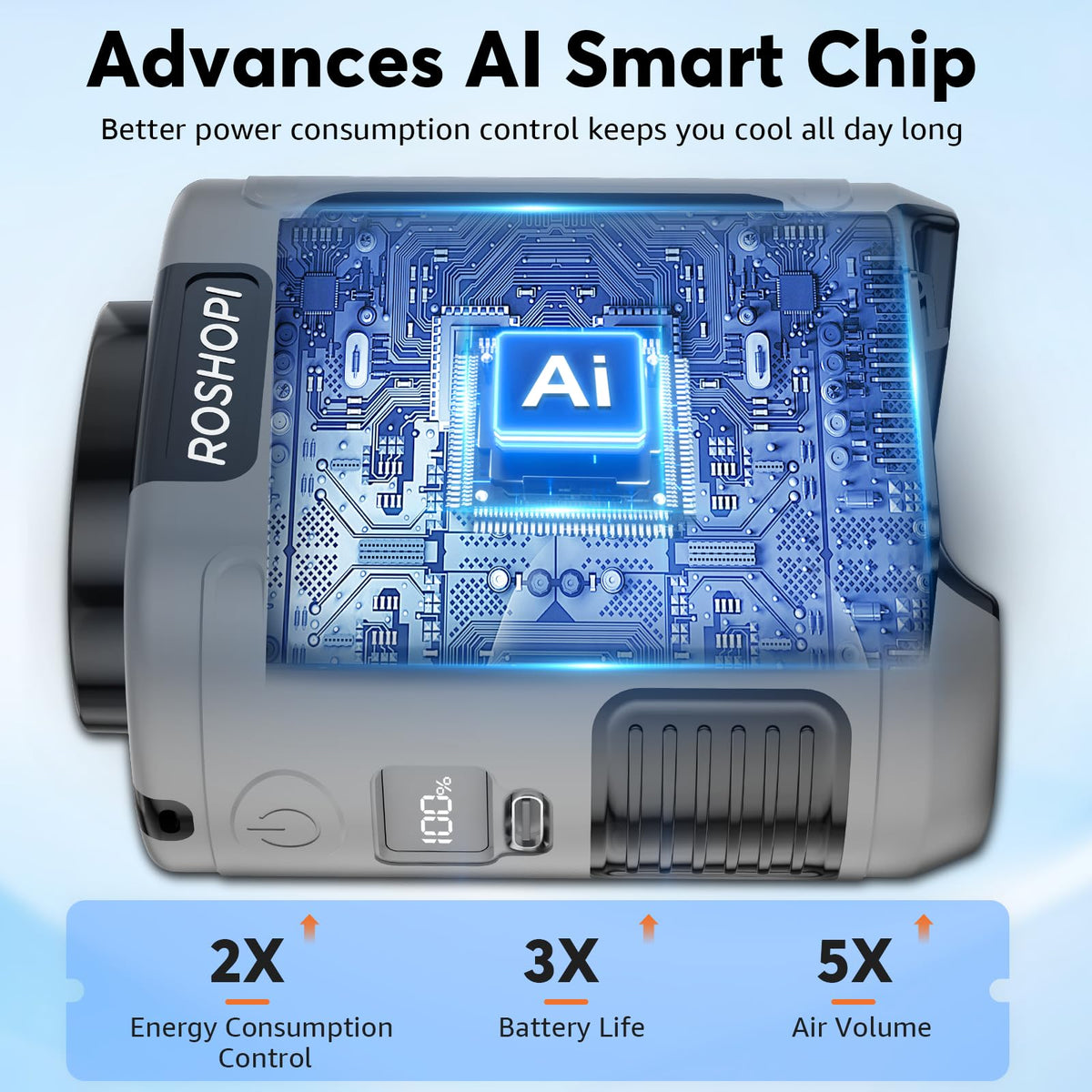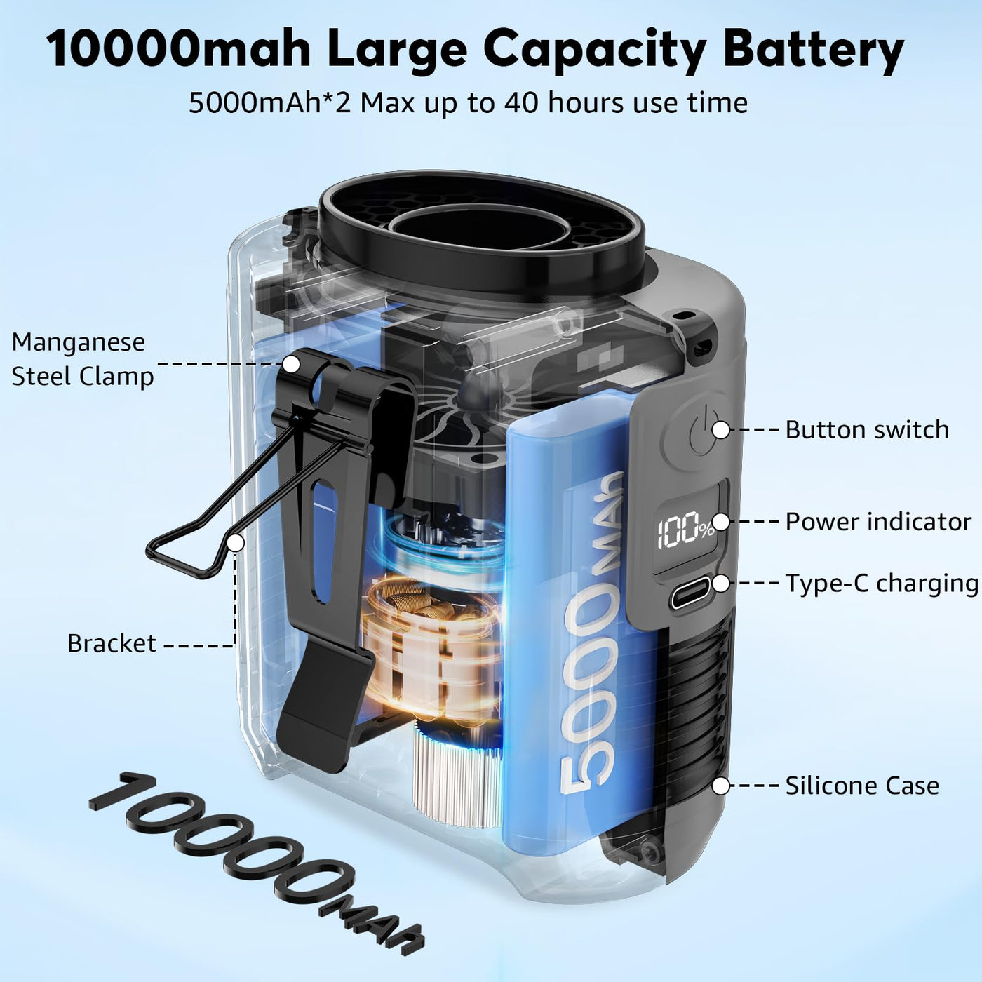 2025 Ai Portable Fan Rechargeable -10000Mah, 40H Work Time With 5 Speeds 16000Rpm Strong Airflow, Personal Waist Fan With Flashl