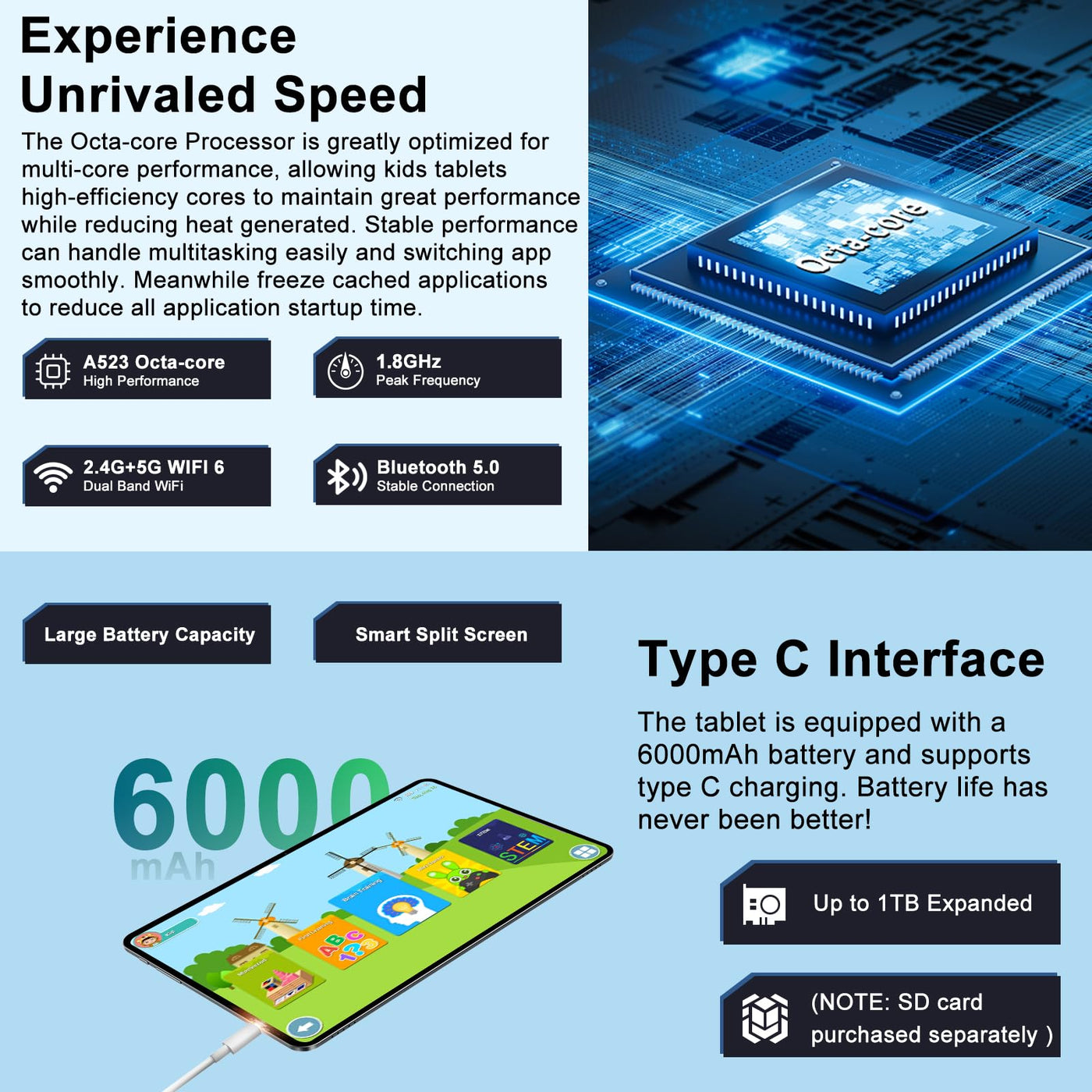 2025 Kids Tablet 10 Inch Android 14 Tablets For Kid Octa Core, 20Gb+128Gb (Tf 1Tb), Toddler Tablet With Shockproof Case, 2.4G+5G