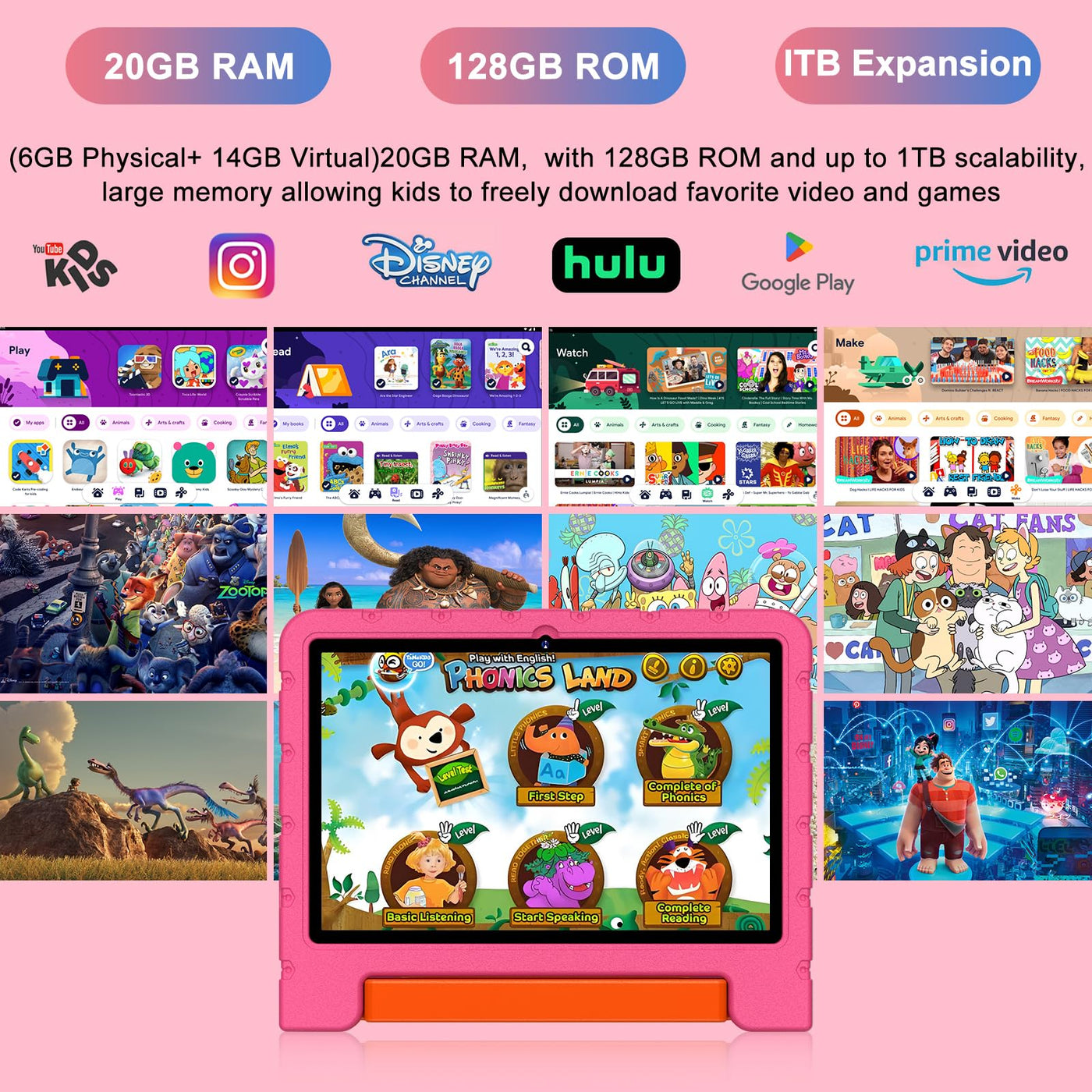 2024 Newest Kids Tablet 10 Inch Android 14 Tablets For Kids Octa-Core, 20Gb+128Gb (Tf 1Tb), Child Tablet With Shockproof, 2.4G+5G Wifi 6, Parental Control, Face Unlocked,Split-Screen Brand: Ziovo Specification: Operating System: Android 14 Cpu: 0Cta-Core; 1.8 Ghz Screen Size: 10.1 Inch Screen Type: Ips 1280*800/ Incell Ram : 20Gb (6Gb Physical+14Gb Virtual) Rom: 128 Gb Dual Camera & Dual-Speaker: Front 5Mp/ Rear 8Mp Memory Expansion: Supports Up To Microsd/ Tf 1Tb Memory Expansion ( Not Included ) Battery: 6000 Mah Support Connectivity: Wifi 6, 2.4 Ghz + 5 Ghz Wlan: Bluetooth 5.0; Hotspot Power Supply :Dc 5V 2A Interfaces: 3.5 Mm Headphone Jack; Type C Port; Micro Sd Card Slot; Mic Supported Other Functions Navigator : Agps (Connected To A Hotspot For Location) Split Screen Face Recognition Ziovo 2-Year Warranty If You Have Any Questions, Please Contact Ziovo On The Order Page And We Will Provide You With A Satisfactory Solution Within 24 Hours On Working Days.