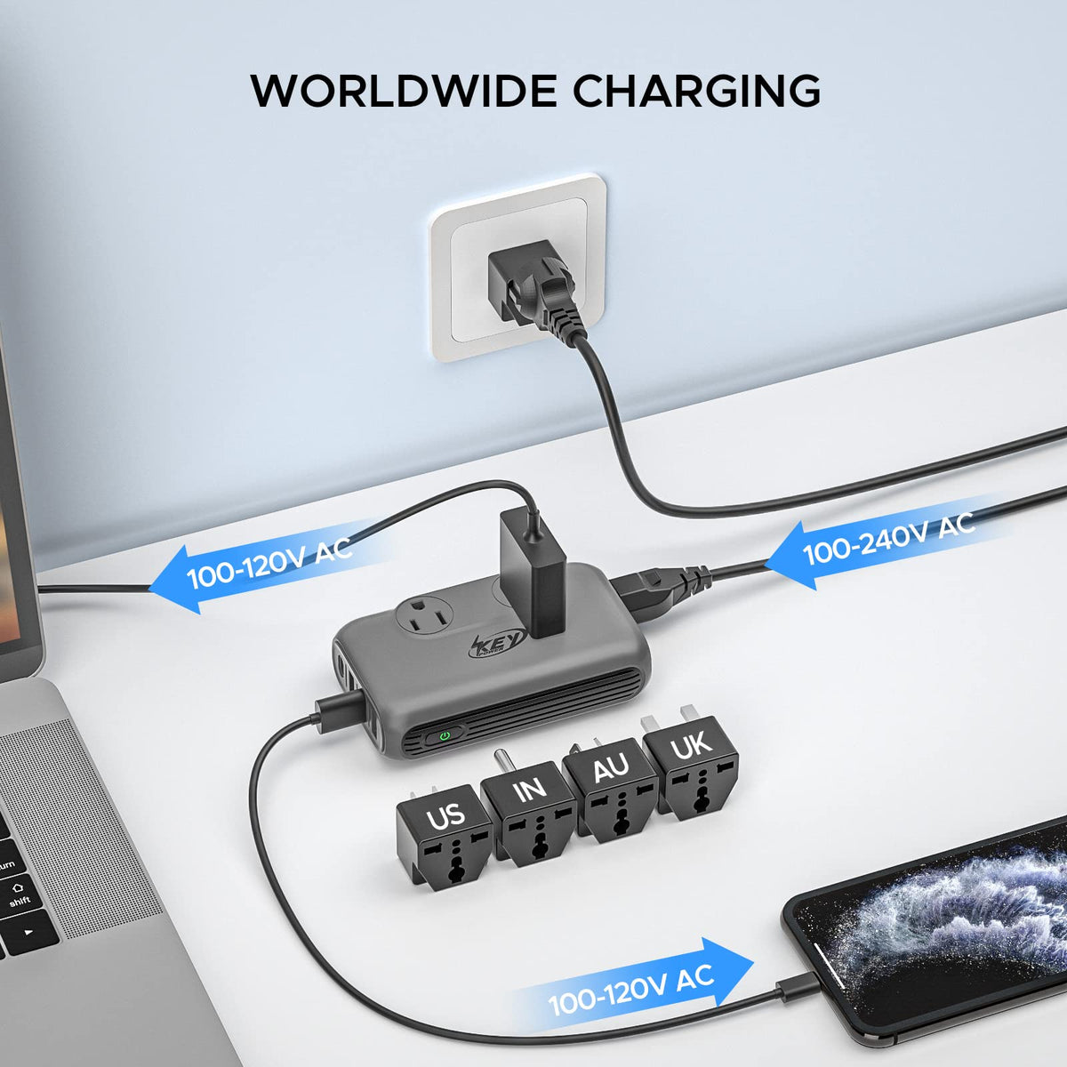 220V To 110V Converter, Key Power 230 Watt Step Down Voltage Converter & Power Converter, International Travel Power Adapter Wit