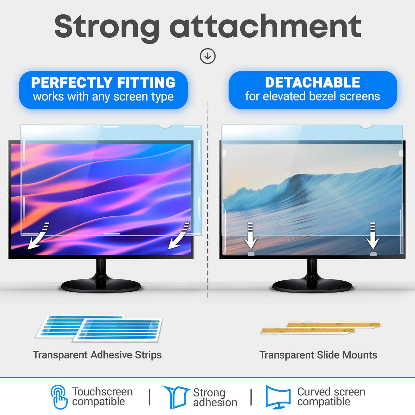 Q: Is this screen protector compatible with my monitor?A: This screen protector is designed to fit 23-inch widescreen monitors with a 16:9 aspect ratio. It is compatible with various brands including HP, Samsung, Dell, Lenovo, Acer, Asus, LG, and ViewSonic, ensuring a versatile fit.
