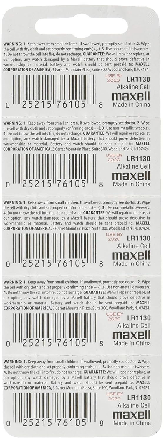 Q: How should I store Maxell LR1130 batteries?A: To ensure the longevity of your Maxell LR1130 batteries, store them in a cool, dry place away from direct sunlight and extreme temperatures. Keeping them in their original packaging until use can also help prevent damage and leakage.