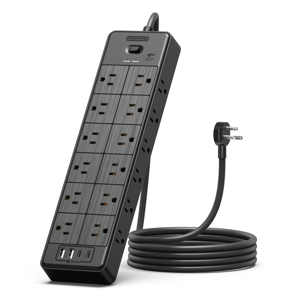 Q: What is the surge protection capacity of this power strip?A: The NTONPOWER power strip features a surge protection capacity of 4000 Joules, which helps safeguard your electronic devices from power surges and spikes.