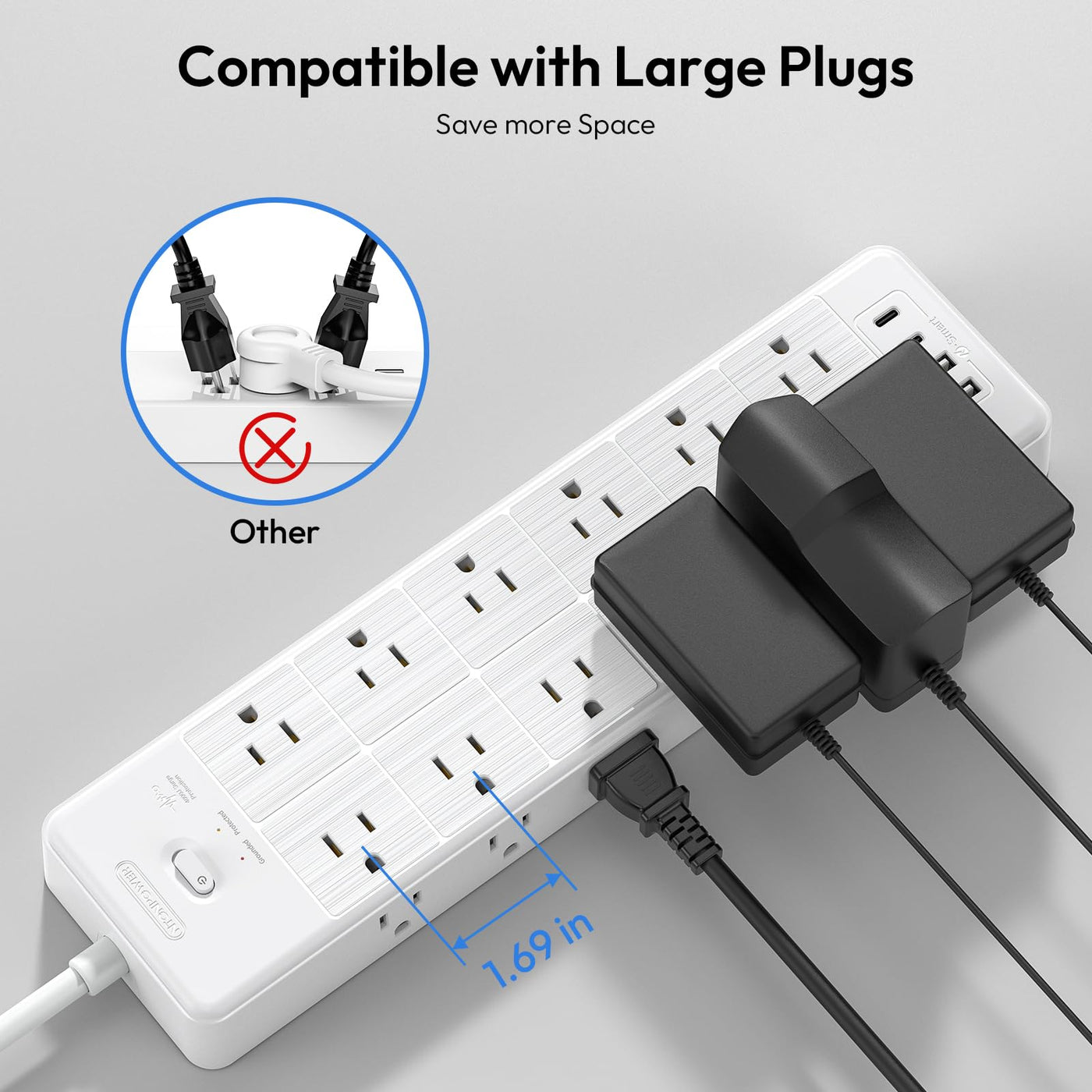 Q: Is the extension cord safe to use with high-power devices?A: Absolutely, it has a built-in overload protection feature that automatically turns off the power when the load exceeds 1875 watts, ensuring the safety of your expensive equipment.