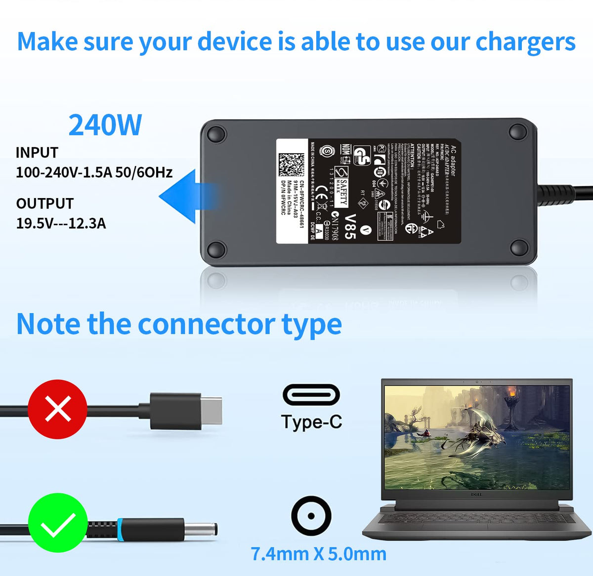 Slim 240W Laptop Charger Replacement For Dell Pa-9E Ga240Pe1-00 Dell Alienware 15 Alienware 14 Alienware 13 Alienware M17X M18X M18X R2 Dell Precision M6400 M6600 M6700 M6800 Laptop Power Adapter Supply Cord Compatible With: For Dell Alienware M17X,M17X R2,M17X R3, M17X R4 Series For Dell Alienware M18X For Dell Alienware M18X R2 For Dell Alienware X51 For Dell Alienware 15 R1 R2 R3 R4 Series For Dell Alienware 17 R3 For Dell Alienware 14 For Dell Alienware 13 R2 R3 For Dell Precision Precision M4700 For Dell Precision M6400 For Dell Precision M6600 For Dell Precision M6700 For Dell Precision M6800 For Dell Precision M6500 For Dell Xps 17 - L702X Part Number: 0J211H, 0J938H, 03Kwgy, 0U896K, 0Y044M, 330-3514, 330-4128, 330-4342, Adp-240Ab, Adp-240Ab B, Ga240Pe1-00, La240Pm160, J211H, J938H, Pa9E, Pa-9E, Pa-9E Family, U896K, Y044M, Fwcrc, C3Mfm, 6Rtjt, Y047M, 450-18931