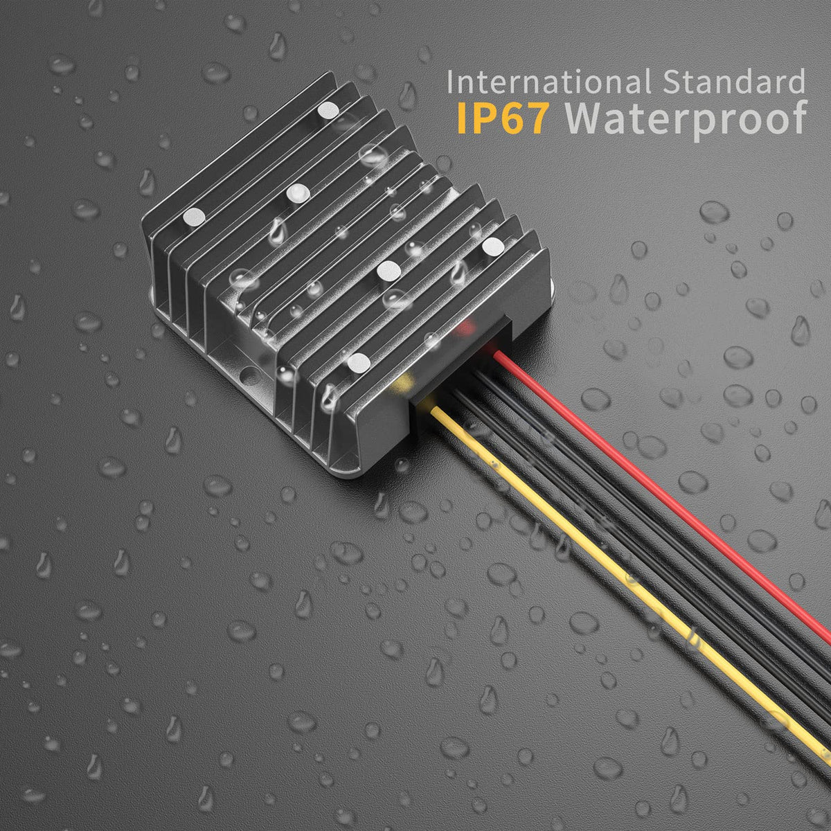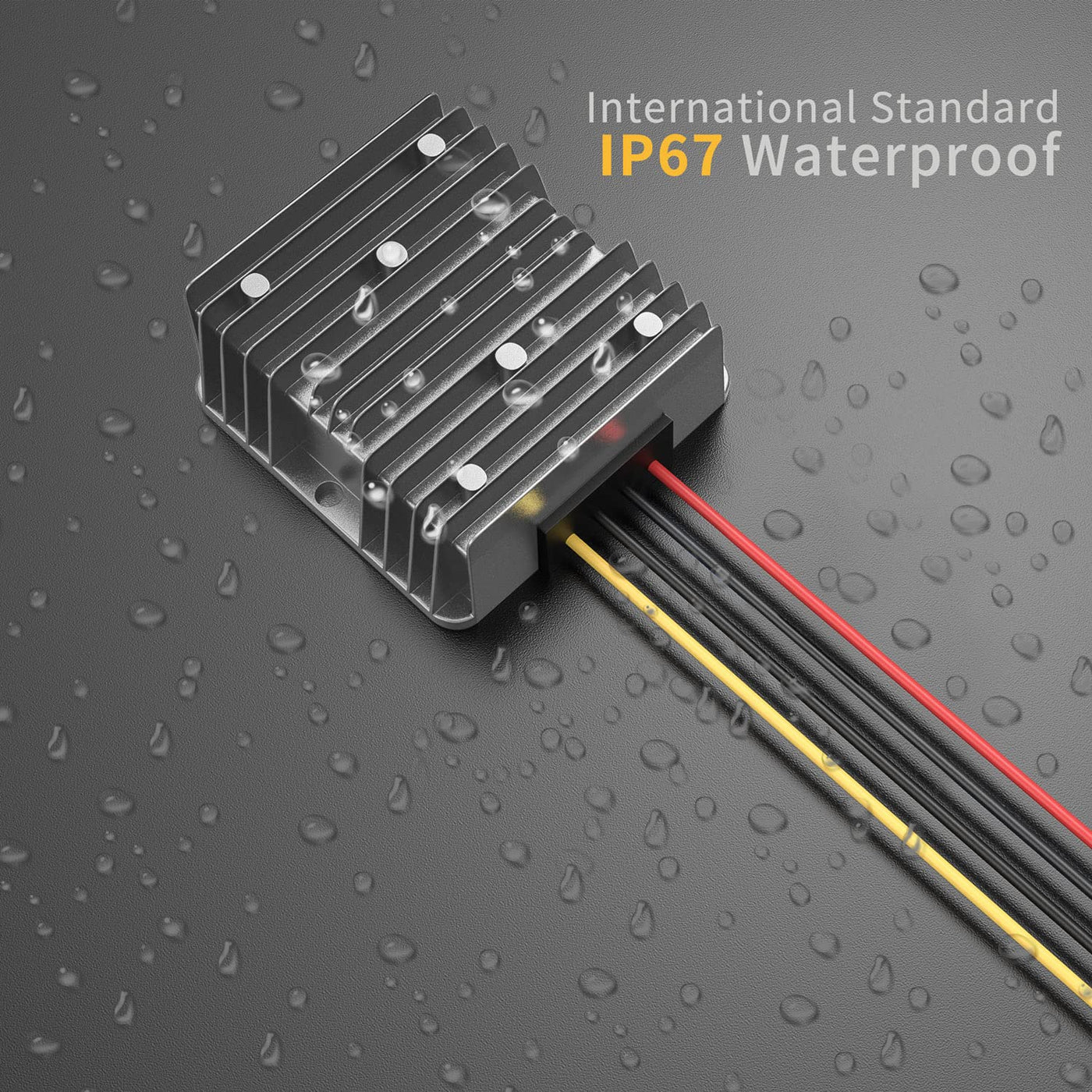 Q: Is the 24V to 12V Converter waterproof?A: Yes, the converter features an IP68 waterproof rating, meaning it is fully protected against dust and can withstand submersion in water, making it ideal for outdoor and harsh environments.