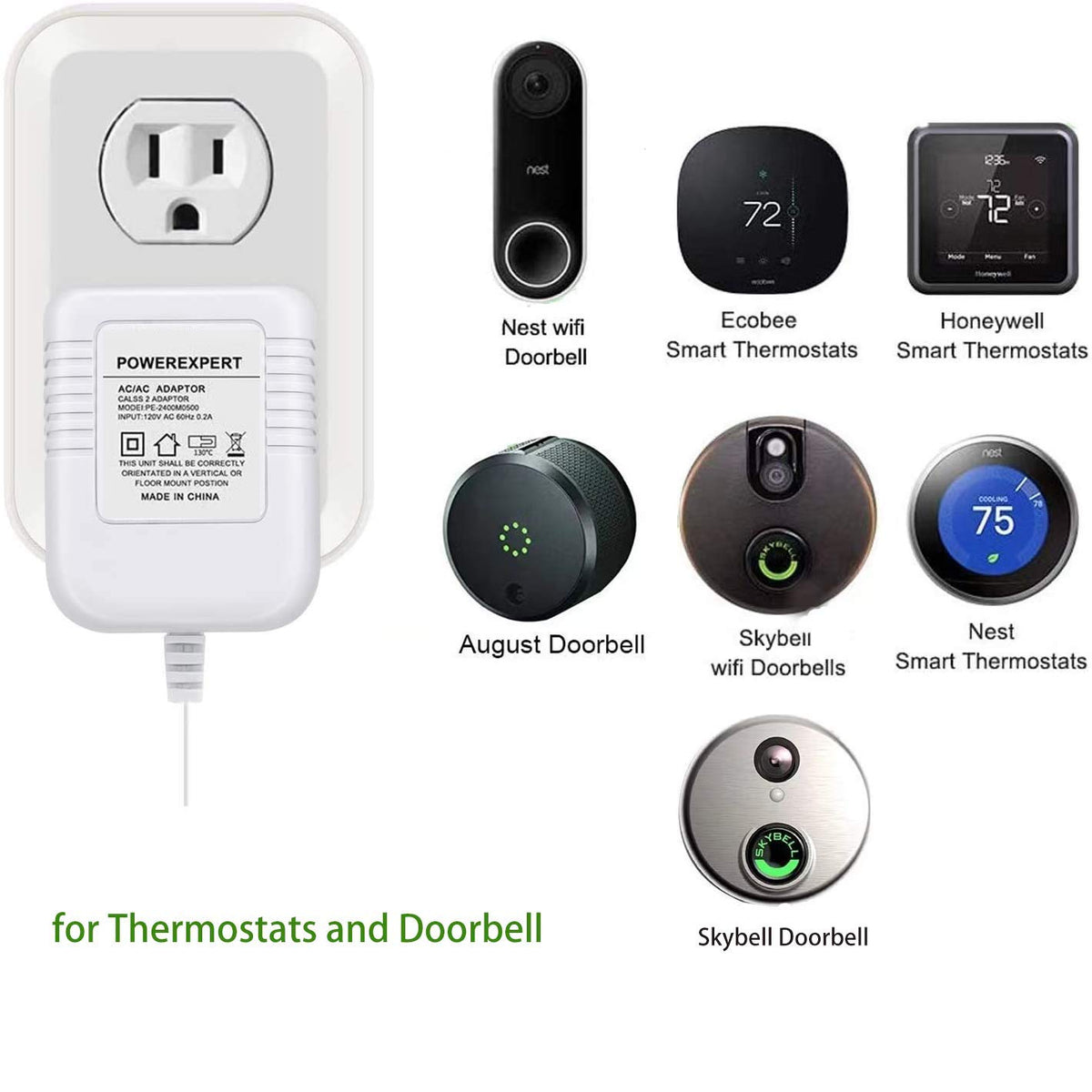 Liansum 24V 500Ma C Wire Adapter For Thermostat And Doorbell Transformer. Product Parameters: Input Ac 120V, 60Hz 0.2A, Output 24V / 500Ma. Cable Length Is 315 Inches / 8 Meters. Compatible With The Following Devices: Compatible With Smart Thermostats ( Nest, Ecobee, Honeywell, Sensi, Emerson, Hive, Etc ) Doorbells ( Ring Video Doorbell, Ring Video Doorbell 2, Ring Video Doorbell Pro, Nest Skybell, Etc.) Other Devices That Require 24-Volt Power With Constant Power And Constant Operation Continuously Charging It Can Be Continuously Charging Your Device Without Worry About Taking Off The Doorbells/ Thermostats And Low Battery, Which Is Time-Saving And Effort-Saving. Security: Special Design And Materials Ensure That Provide The Best Current Output Connected To Your Device. Prevent Short Circuit, Overvoltage, Overcurrent, Overheat, Ensure Charging Safety. Easy To Install: 2 Pin Non-Polarity Wires Support Easy And Quick Install, 26 Ft Cable Is Long Enough To Plug It Into An Electrical Outlet Inside Or Outside Your House.