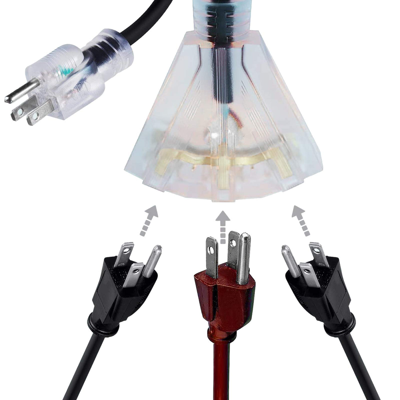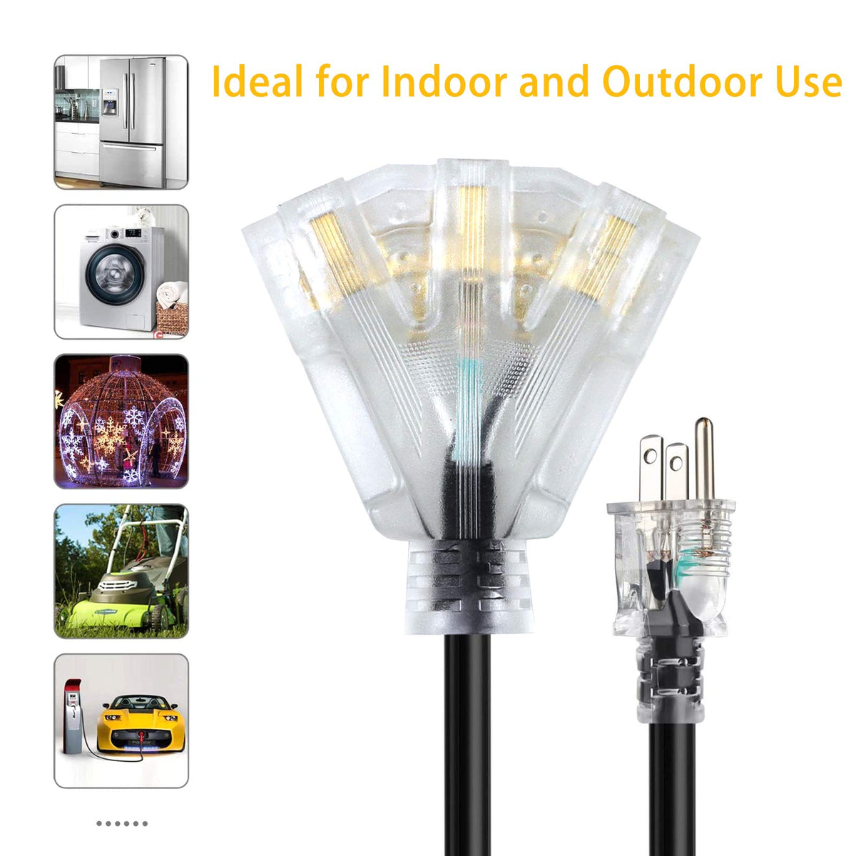 Features : Sjtw Heavy Cord With Poly Stranding For Additional Strength, Heavy Gauge Soft Drawn Copper Cabling, Suitable For Temperatures From -40 Degree F To 140 Degree F And Works With Both Indoor And Outdoor Applications. Our Cords Won'T Kink And Uncoil Flat Every Time, Double Insulated Material That Won'T Mar Walls And Stands Up To Concrete. Coated In Wear Resistant Pvc Outer Jacket, Resist Tearing, Abrasion, Moisture And Exposure To Sunlight. Angled 3-Way Outlets Allow For 3 Larger Tools To Be Plugged In At Once! Ideal For Both Indoor Outdoor Use. Specification : Certification : Ul Covering : Pvc Material + Sjtw Thermoplastic Wire Gauge : 12 Awg With 3 Conductors Grounded Amp Rating : 13A Max Voltage Rating : 125V Max Rated Power : 1875 Watts Use : Indoor / Outdoor Package : 1 Black Outdoor Extension Cord