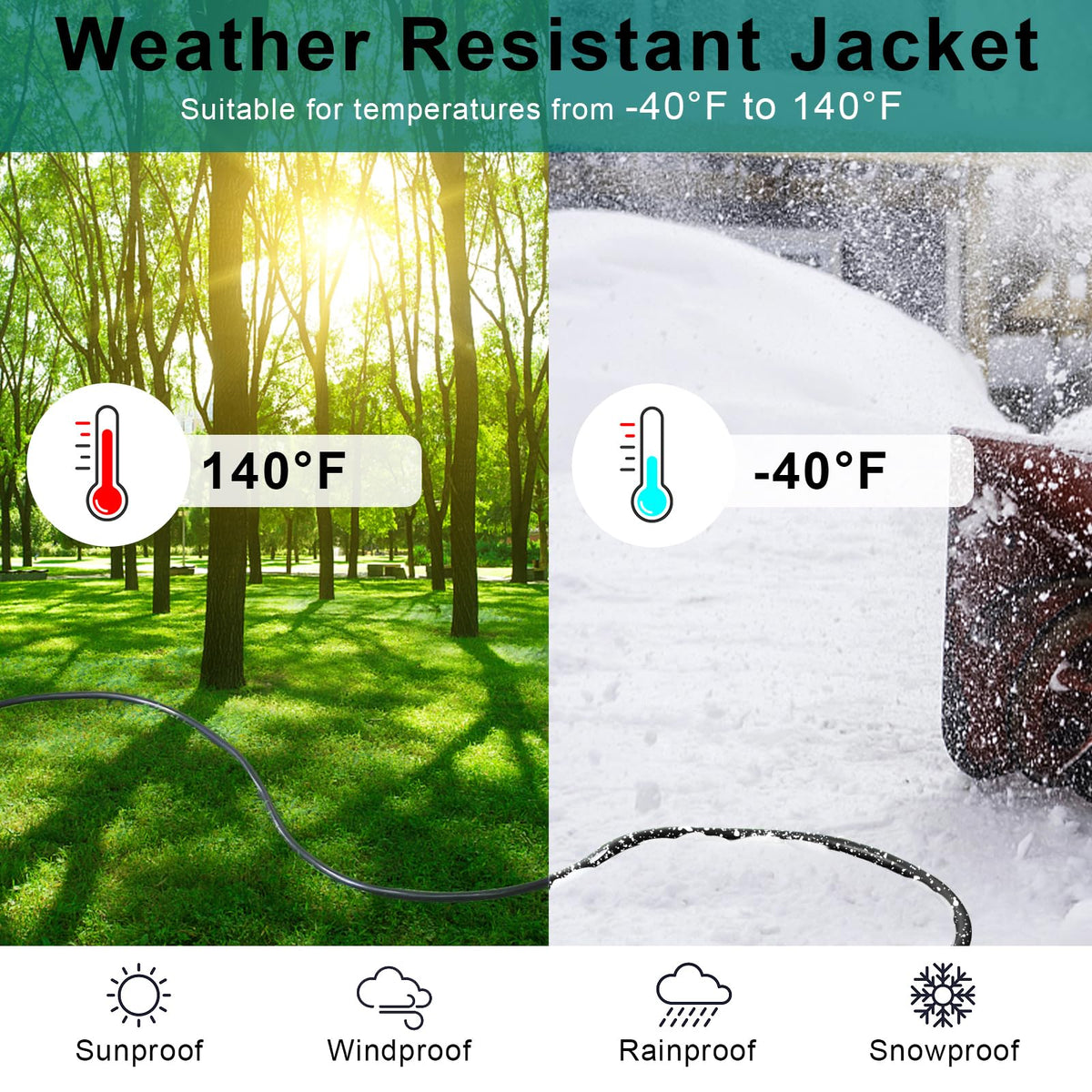 Q: Is this extension cord suitable for use in cold weather?A: Yes, this extension cord is designed to work in temperatures ranging from -40°F up to +140°F, ensuring flexibility and functionality even in cold weather.