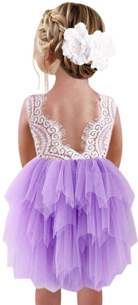 2Bunnies Girl Peony Lace Back A Line Tiered Tutu Tulle Flower Girl Dress (Purple Sleeveless Short, 12Months)