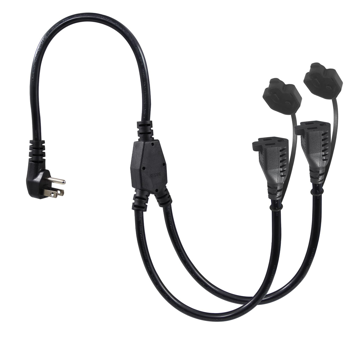 2Ft Outdoor Extension Cord Splitter 90 Degree Flat Plug Black 2 Way Waterproof Power Cord Y Splitter,1 To 2 Extension Cord, 12