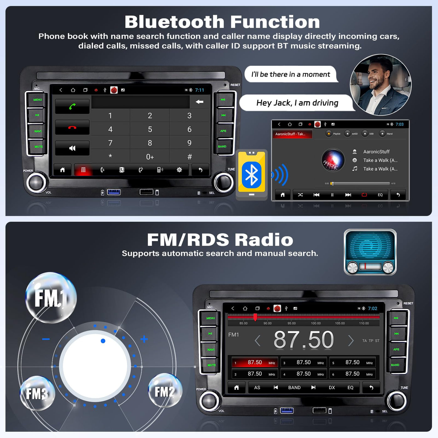 Features: 1.Mirror Link With Andriod Phone And Ios Phone 2.High-Quality Digital Stereo Fm Radio 3. Support Rear Camera Input, Backup Camera Included In Package. 4.Support Gps Navigation Function, Online Navigation With Wifi Connected. 5.Support Original Car Steering Wheel Button Learning Function. 6.Built-In Bluetooth Function,Support Handsfree Calling,Phonebook Download, Bluetooth Music Play 7.Support External Aux Audio Input And A Variety Of Eq Sound Effects Scene Selection, Meet Your Music Enjoyment 8.Two Usb Port(One Play Music, One Support For Phone Charge) 9. The Radio Size Is 22*13*5.2Cm/8.66*5.11*2.09 Inch, Please Check Your Car Dash Size Before Purchase, It Comes With Suitable Wire Harness And Canbus Box. Specifications: Model: Vw Car Player Size: 7 Inch Memory 2G, Storage 32G Fm Radio: 87.5~108Mhz Voltage: 12V Bluetooth: Bluetooth 4.2 Usb: Usb2.0 Audio Amplifier: Tda7388 Audio Format: Mp3 Mp2 Aac Ogg Flac Ape Wma Wav Rm Ac3 Video Foramt: Avi 3Gp/Mp4 Mov Mpg Mkv Wmv Rmvb Factory Setting Password: 8888 Language: Indonesian, Malay, Czech, Danish, German, English Spanish, Filipino, French, Croatian, Italian ,Latvian, Lithuanian, Hungarian, Dutch, Norwegian, Polish, Portuguese, Romanian, Slovenian Finnish, Swedish, Vietnamese, Turkish, Greek, Bulgarian, Ukrainian, Hebrew, Pakistani, Arabic, Persian, Hindi, Bengali Burmese, Khmer, Korean, Chinese, Traditional Package Included: 1 X Vw Player 1 X Backup Camera 2 X Power Cable 1 X Rca Input/Output 1 X Gps Antenna 1 X Canbus Box 1 X Radio Adaptor 1 X Usb Cable 1 X Camera Input Cable 1 X User Manual