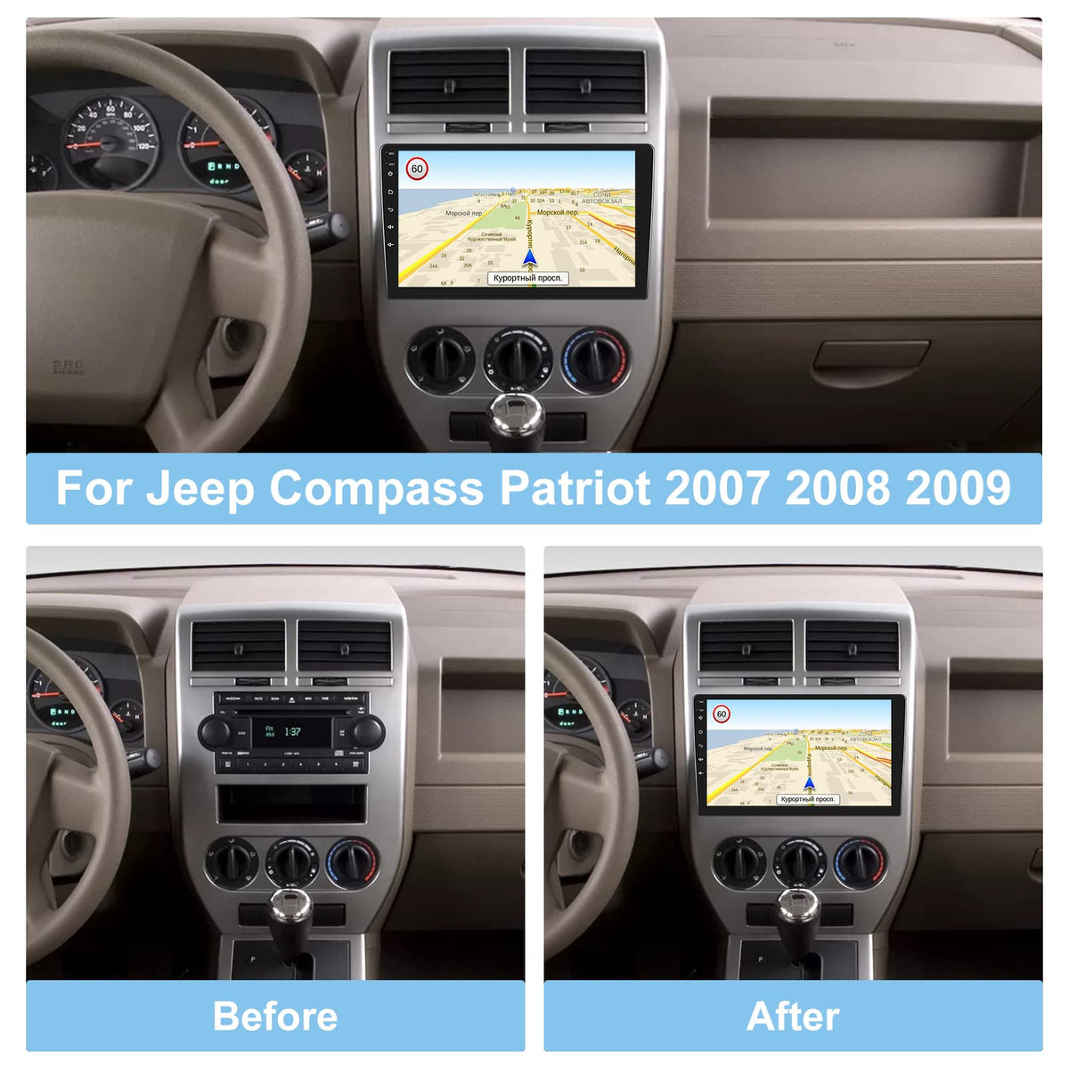 [2G+32G] Car Radio For Jeep Compass Patriot 2007 2008 2009, 10.1 Inch Android Touch Screen Stereo, Carplay/Android Auto/Mirror L