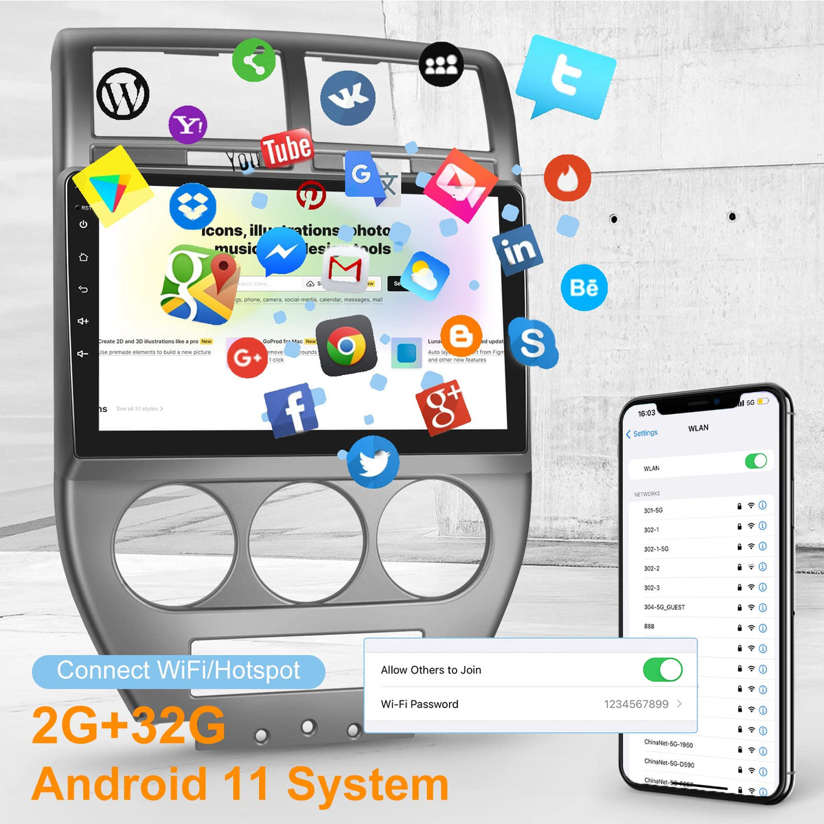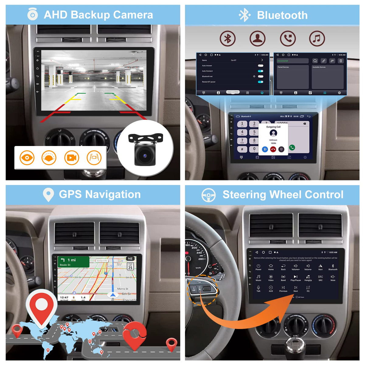 [2G+32G] Car Radio For Jeep Compass Patriot 2007 2008 2009, 10.1 Inch Android 11 Touch Screen Stereo, Carplay/Android Auto/Mirror Link/1080P/Swc/Bluetooth/Wifi + Ahd Backup Camera+Mic