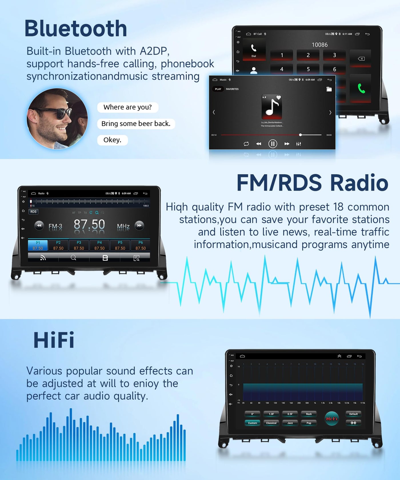 2G 64G Android Car Stereo Radio Carplay For Mercedes Benz C Class C180 C200 C230 C250 C300 C350 W204 S204 2006 2011, Rimoody 9 T