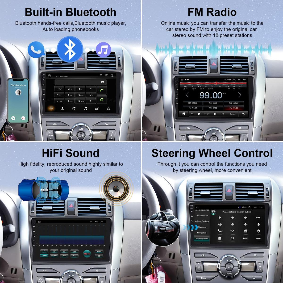 Features: ?Hd 9'' 2.5D Tempered Glass Mirror Auto Radio Player ?Wireless Carplay: You Can Choose Wired Connection Or Wireless Connection To Carplay, Connect To Mobile Phone, Access Mobile Phone Address Book, Mail, Notification, Map Navigation, Music, Video And Other Information, And Realize Voice Control. ? Wireless Android Auto: The Wireless Android Auto Car System Can Closely Integrate The User'S Android Phone And Player, And Realize Navigation, Make Calls, Send And Receive Information, Listen To Music And Other Operations Through Data Cable Connection; ?Built-In Gps Navigation ?High Definition 1080P: Full Capacitance Touch Screen For Easy Operation, Well Designed User Interface For Car Only ?Built-In Wifi: Connect To Wifi, And You Will Find A New World,The Most Convenient One Is The Online Map. ?Hi-Fi Function: High Fidelity, Reproduced Sound Highly Similar To Your Original Sound ?Built-In Bluetooth With A2Dp/Hands Free/Phone Book ?Double Usb Adapter Input ?Fm Radio: Online Music You Can Transfer The Music To The Car Stereo By Fm To Enjoy The Original Car Stereo Sound,With 18 Preset Stations ?Support External Microphone Specifications: System:Android13 Screen Size:9'' Memory:2Gb (Ram)+64Gb (Rom) Screen Resolution:1024*600 Power Output:4*45W Radio Band:Fm/Rds Video Output:Support External Microphone: Support Split Screen: Support Maps:Built-In Offline Maps(Requires Internet To Download Data) Wifi:Support Usb:Double Usb Interface Factory Setting Keyword:8888