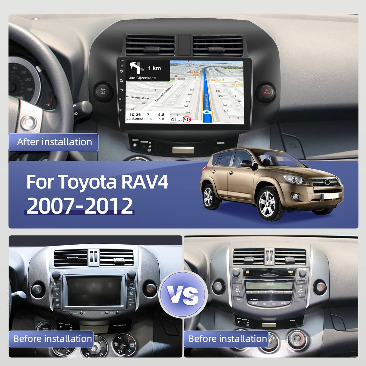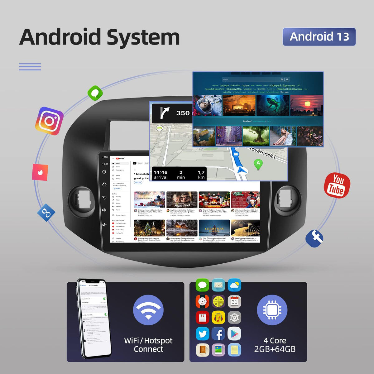 [2Gb+64Gb] 10.1 Inches Car Radio For Toyota Rav4 2007 2012, Android 13 Touch Screen Car Stereo, Carplay&Android Auto/1080P/Hi Fi