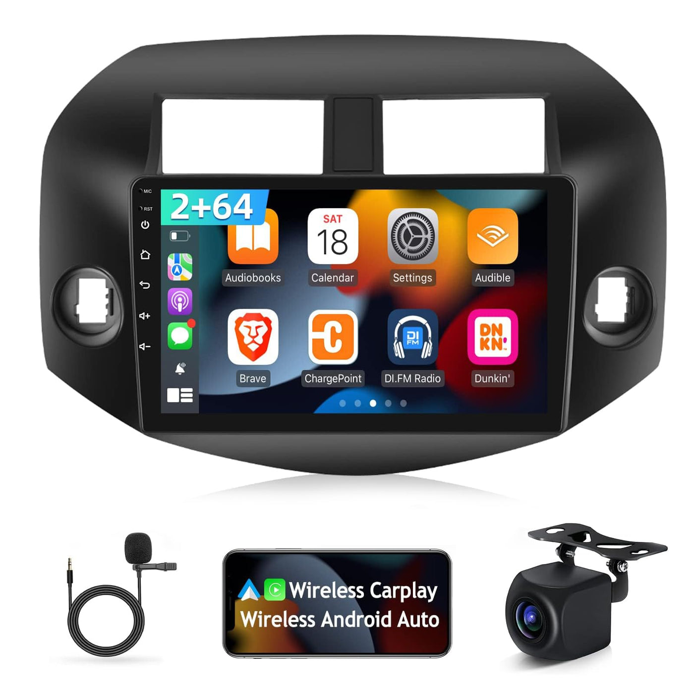 [2Gb+64Gb] 10.1 Inches Car Radio For Toyota Rav4 2007-2012, Android 13 Touch Screen Car Stereo, Carplay&Android Auto/1080P/Hi-Fi Audio/Bluetooth +Ahd Backup Camera+Mic