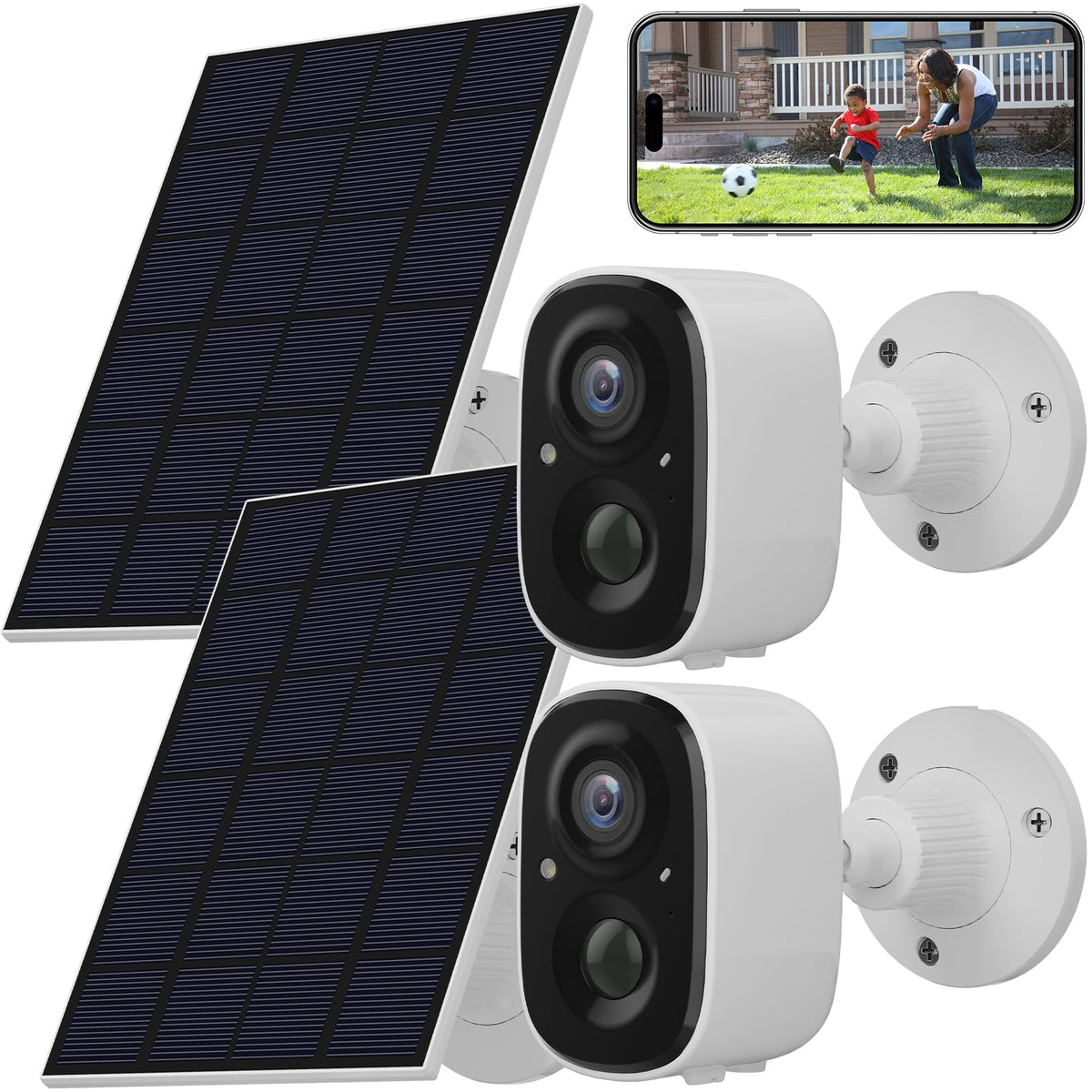 2K Solar Outdoor Camera For Home Security (2Pcs) Cmaii 2.4G Wifi Security Cameras 2K Hd Wireless Solar Cameras With Battery Powe